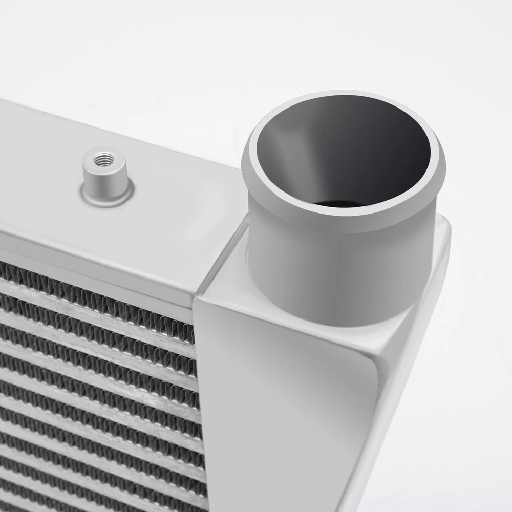 This intercooler is a beast! The polished aluminum finish looks sleek, and the 2.5" inlets fit perfectly for a direct bolt-on upgrade. Cooling efficiency is impressive—no more heat soak issues even under heavy boost. Sturdy construction, great airflow, and the size is just right for most setups. A must-have for turbo builds!