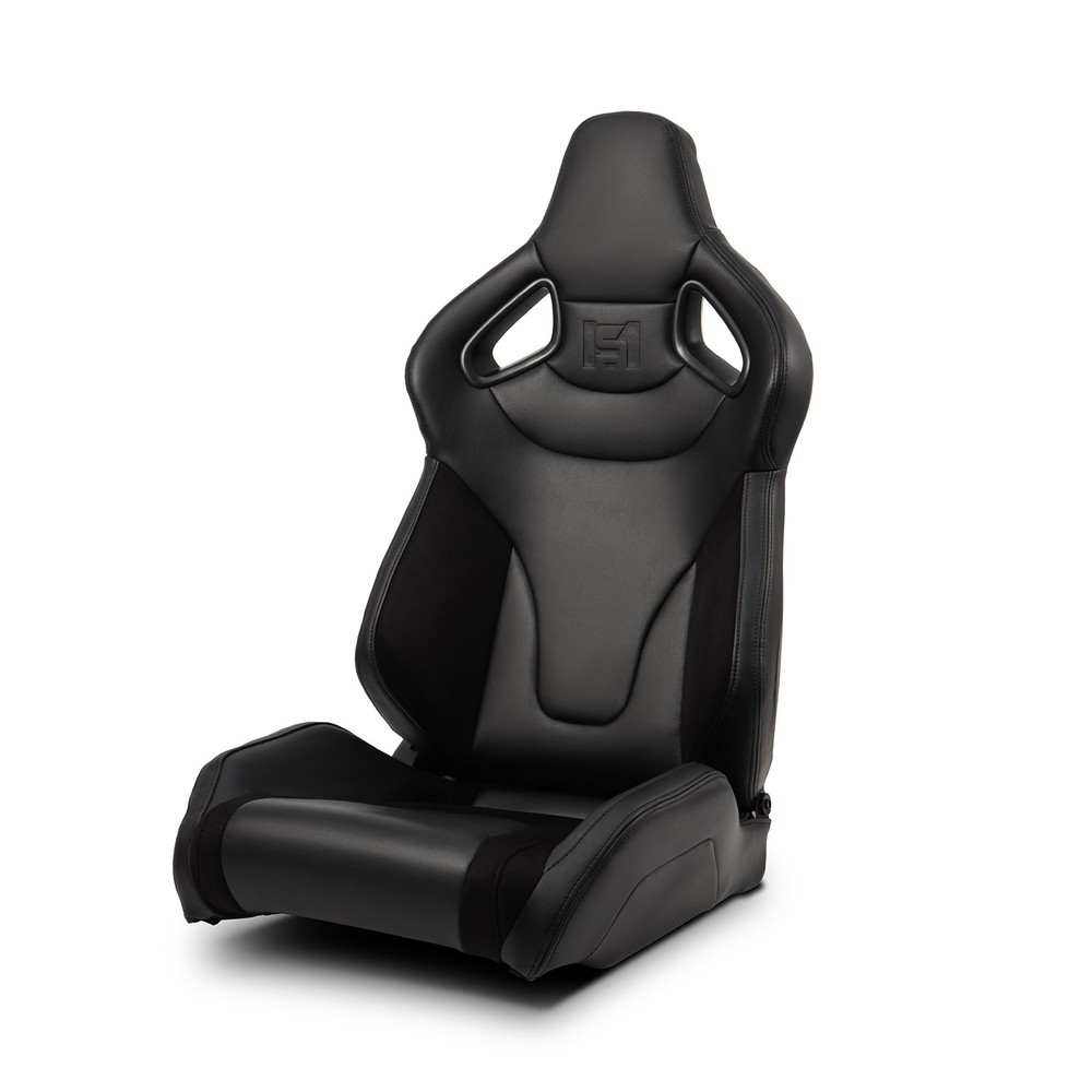 2 x Reclinable Racing Seats Pair Black PVC Main White Line Reclinable Seats