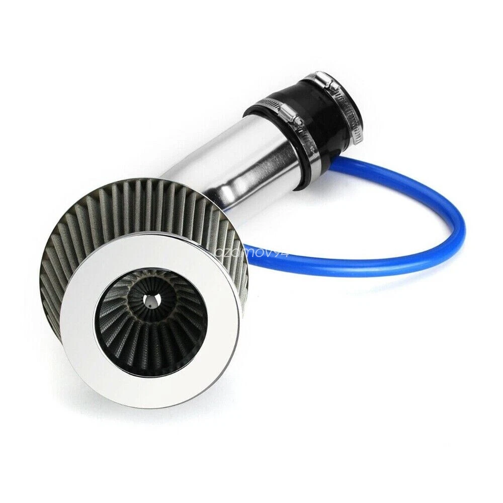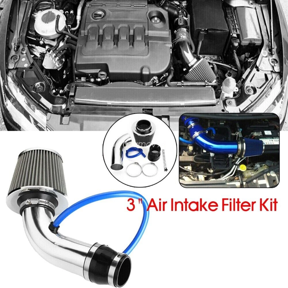Car Cold Air Intake Filter Induction Kit Pipe Power Flow Hose Universal System Fitment: Universally fit to vehicle with the diameter of air intake hose measures at 76mm/3" or 64mm/2.5"(using inclusive reducer). Also applicable to air intake systems on modified on modified vehicles. Specification: Condition: New Manufacturer Part Number: JU63Q1852 Application: Universal fit for most car, auto, truck etc. Air filter inner diameter: 75mm / 3" Material: aluminum Color: chrome UPC: 6212805830889 Model number: A31852 Product name: air intake kit Length of the mounting bracket: Features: Filter made with dry density fibers for maximum protection from foreign materials entering the engine. Funnel-shaped air filter to direct cold air inward, boost air speed and generate. Optimize throttle response, improve torque and fuel / gas mileage. The aluminum injection pipe coupled with the funnel-shaped air filter allow cold airflow channeling leading to minimal intake turbulence, air speed boosting and, in turn, creating pure horsepower and improving fuel / gas mileage. This air intake kit system is the complete solution to optimize throttle response and generate explosive horsepower output. Installation: Blue hose connected to car vacuum sensor Filter features: High air flow with excellent filtration. Designed to increase horsepower and acceleration. Washable and reusable. Package included: 1 x air intake filter 1 x hose 1 x silicone joiner 1 x tube hose 1 x mounting bracket 2 x clamp Notes: Due to the difference between different monitors, the picture may not reflect the actual color of the item. Please allow 1-2cm difference due to manual measurement and slight color variation for different display setting