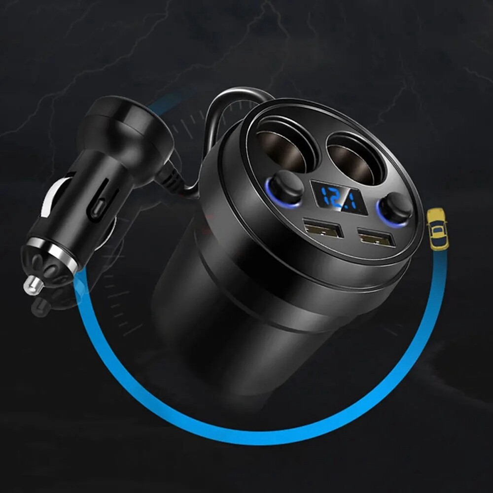 Universal Car Cup Dual Usb with Cable Car Multi-Function Lighter Car7289 Name:Cup car charger Item Type: Fit:Universal Colour:Black Material:ABS Package Contents: 1 * cup car charger