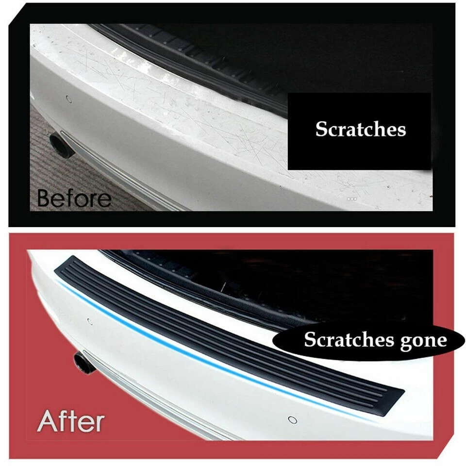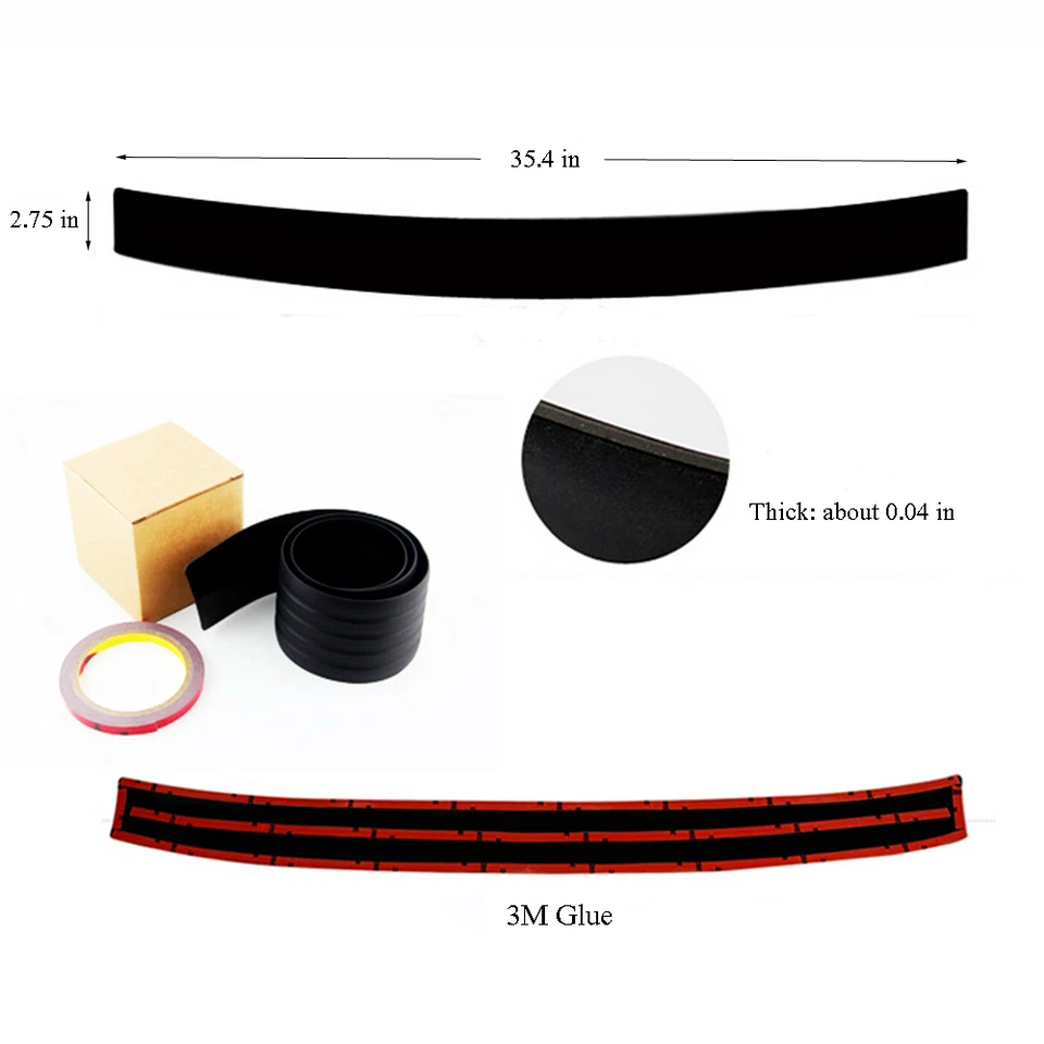 Features: 1.High anti-scratch rubber class with a matt surface, soft and strong. 2.The design of the groove and non-slip function, to prevent the fall of the things that you temporarily put. 3.To cover existing scratches and prevents your car from wear, scratches, paint scratches, etc. Etc. .. 3.Ideal Easy to install. 4.Decorate the car appears to make your car special and unique. Specification: Size: Apporox.35.4"*2.95"*1.38"(as the picture shows) Color: Black Material: high quality rubber Compatibility: Suitable for all vehicles with a rear-guard How to use it : 1.apply double-sided tape to the protective strip. 2.apply the adhesion promoter. 3.apply to your car. Package contents: 1* Rear Guard Bumper Protector Trim Cover 1* Red double-sided tape NOTE: Please check if the product size is suitable for your vehicle before buying, if not, please do not place an order.