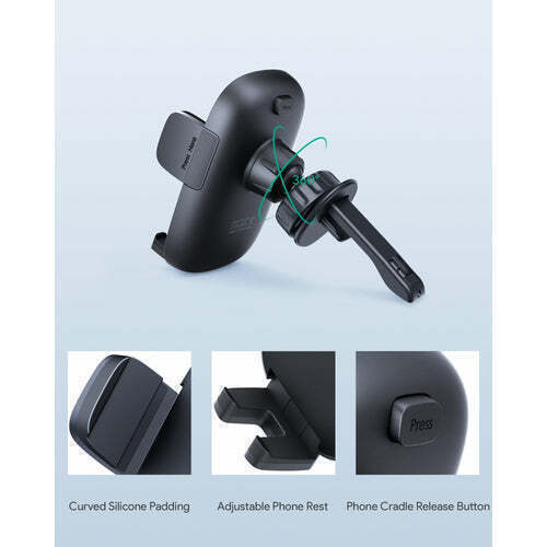 Description Secure Mounting : With the upgraded vent clip, this car phone mount holds your smartphone or GPS securely on an air vent in your car Adaptable Attachment : Features a grip locking ring to easily and firmly fix the air vent mounting grip on your car air vent Ideal Viewing Angle : A 360° rotating and pivoting ball joint allows you to adjust to the best viewing angle and quickly switch between portrait and landscape view Simple Operation : Push the phone cradle arms in to secure your phone. Press the button to release it Package Contents : AUKEY HD-C58 Car Phone Mount, User Manual, 45 Day Money Back Guarantee and 24-Month Product Replacement Warranty Card