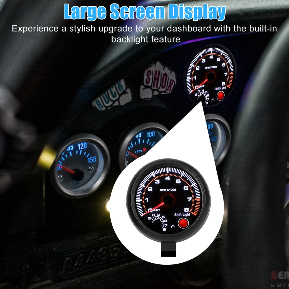 Features 2: self-check and automatically adjusts the pointer. Manufacturer Part Number: Does Not Apply Input Voltage: 12V Material: ABS Compatible With: 4, 6, and 8-cylinder engines Style: racing Warranty: One Year Warranty Light color: White light gtin13: 601549099526 Type: tachometer Brand: Wowpartspro Feature1: built-in backlight+adjustable shift light Fit For: for 12V petrol vehicles Display Type: analog & digital Features: Intelligent Car Meter Application: measuring the RPM of your automobile engine Diameter: Approx. 3.75"/95mm Color: Black Measurement Range: 0~8000RPM Unit of Measure: rpm MPN: Does Not Apply Suitable for: 4, 6, and 8-cylinder engines Feature3: Strong Compatibility UPC: 601549099526 Feature 2: self-check and automatically adjusts the pointer.