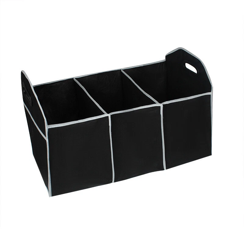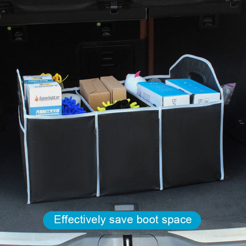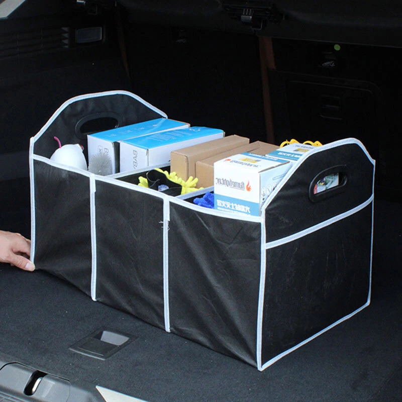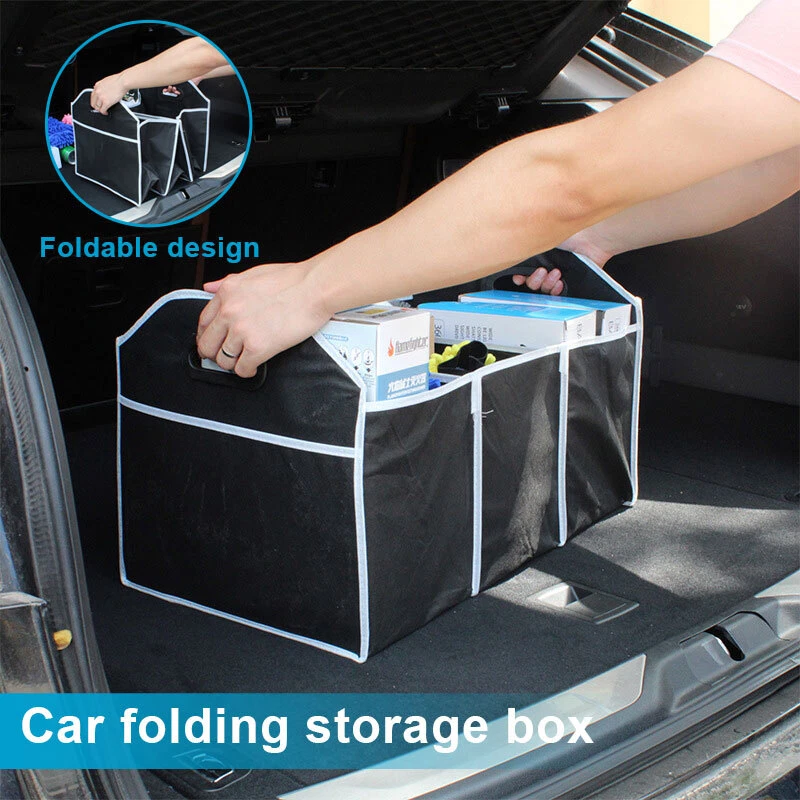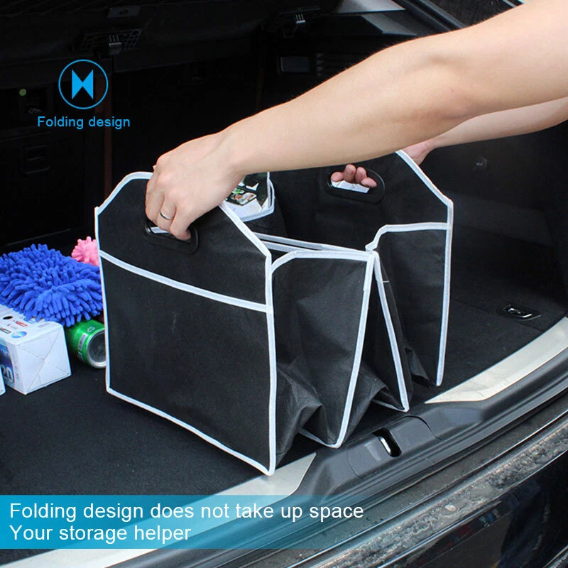 Universal Car Trunk Organizer Box Toys Food Storage Container Auto Accessories Car trunk storage bag tool bag black case Large internal capacity and multiple external pockets design make full use of space and super practical Use black oxford cloth to be firm, because some parts are sewn, so there are some extra thread ends, and you can remove it with scissors It can accommodate vehicles, travel tools, first aid kits, nursing tools, sports goods, outdoor supplies, etc. Design: Various tools can be stored. Advantages: practical, durable, anti-dirty, easy to use. Product description: Divided into 3 independent spaces, there are multiple pockets on the outside to make full use of space and resources; the bag has a handle for easy carrying. When not in use, it can be folded and stored without taking up any space. Package included:1pcs Note 1. Due to the light and screen difference, the item's color may be slightly different from the pictures. 2. Please allow 0.5-2 cm differences due to manual measurement. 3. Thank you for your kindly understanding.