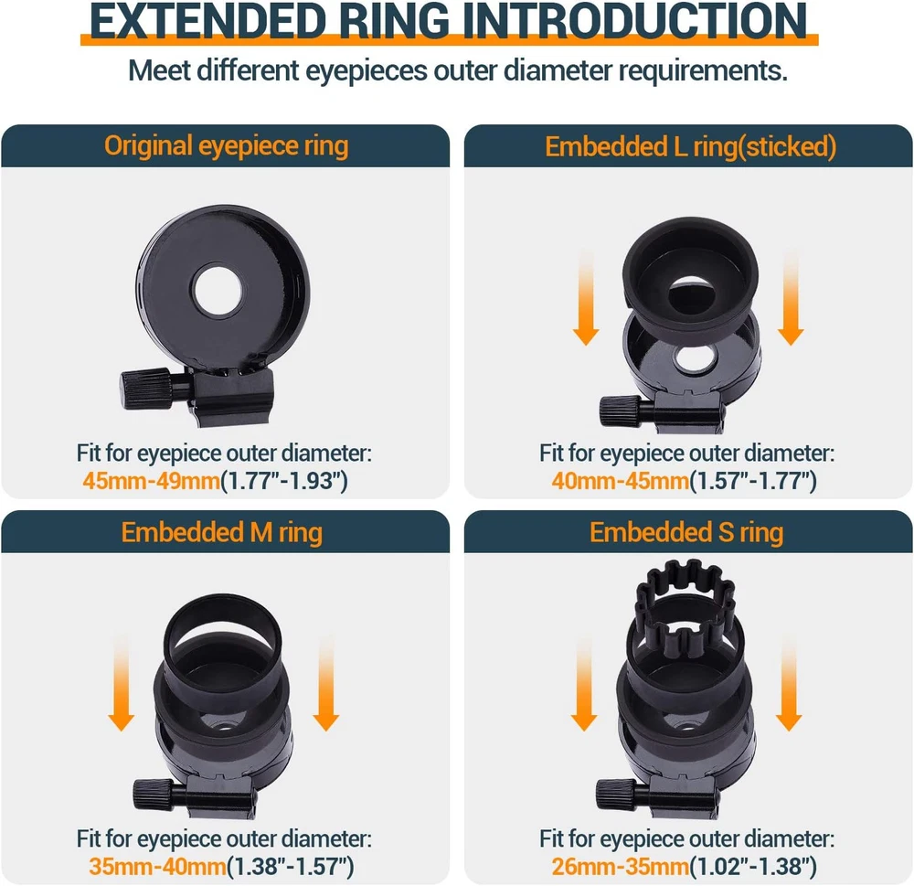 Universal Cell Phone Mount Compatible Binoculars Telescope Phone Adapter Holder LAKWAR Telescope Phone Adapter, Universal Cell Phone Mount Compatible Binoculars, Monocular, Microscope, Spotting Scope, Telescope, Smartphone Holder Clip Bracket Fits Almost of Mobile Phones Product Description: The LAKWAR Telescope Phone Adapter is a universal solution for capturing stunning photos and videos through telescopes, binoculars, monoculars, microscopes, and spotting scopes. Its adjustable design fits most smartphones, transforming your mobile device into a high-powered imaging tool. This durable and easy-to-use adapter ensures secure mounting and seamless compatibility with various optical devices. Features: Universal Compatibility: Designed to fit a wide range of optical devices, including telescopes, binoculars, microscopes, monoculars, and spotting scopes. Fits Most Smartphones: Adjustable holder clip accommodates almost all mobile phone models, ensuring a snug and secure fit. Durable and Lightweight: Made from high-quality materials for long-lasting use, while remaining lightweight for portability. Easy Installation: Simple and intuitive setup allows you to quickly mount your smartphone to your optical device without tools. Secure and Stable Design: Non-slip padding and robust clamps keep your phone steady, preventing movement during use. Enhanced Viewing Experience: Perfect for capturing detailed images and videos of wildlife, celestial objects, or microscopic specimens. Compact and Portable: Its compact design makes it easy to carry, making it ideal for outdoor adventures or lab work. Versatile Usage: Ideal for stargazing, birdwatching, nature observation, or educational purposes, enhancing your visual experiences. Mounting Type Tabletop Mount Color Black Product Dimensions 5.91 x 1.18 x 2.56 inches Compatible Devices Smartphones Item Weight 3.1 ounces Special features Adjustable Form Factor Ring Compatible Phone Models Samsung, iPhone, LG, OnePlus, HuaWei, Xiaomi, etc. Shipping Fast shipping is very important for us. Our standard USA shipping service is FREE. Your order will be shipped within 1-2 business days upon full payment received. Your order will be delivered within 1-3 business days after the handling time. We only ship to the confirmed address. We reserve the right to cancel any order for any reason at any time. We are not responsible for undeliverable addresses. Returns and payment We offer a 30 days return policy from checkout winning date. FeedBack Your feedback very important to us, after you get your package and you are satisfied with our service please leave us positive feedback If you have any problem with your order / any questions please before leave any type of feedback For any questions, using eBay contact system Please visit our eBay store to check out other items for sale! Thank you for shopping at our store.