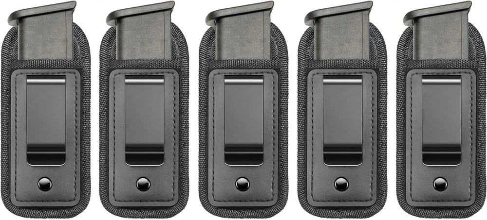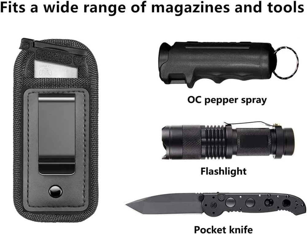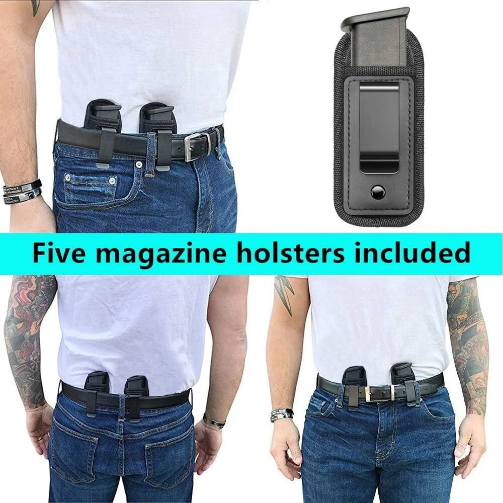 Universal Concealed Carry Mag Holder Pouch Set - Fits Glock, Sig Sauer, and More ‹ › ‹ › ‹ › ‹ › ‹ › ‹ › ‹ › ‹ › ‹ › Universal Concealed Carry Mag Holder Pouch Set -Fits Glock, Sig Sauer, and More Features: Made with soft neoprene and leather for sweat-proof and skin-friendly wear Linen inside for maximum mag protection Secure steel belt clip for concealed carry Fits most Single/Double Stack Magazines including popular brands Set includes 5 PACK magazine holders Best deal for Pistol Mag Pouches Benefits: Comfortable and sweat-proof material Durable and secure steel belt clip for concealed carry Fits a wide range of magazine types Great value with 5 magazine holders included High quality at an affordable price Why choose our Universal Concealed Carry Mag Holder Pouch Set? Looking for a reliable and comfortable way to carry your magazines? Our Universal Concealed Carry Mag Holder Pouch Set is the perfect solution. Made with soft neoprene and leather, it's sweat-proof and easy on the skin, with a secure steel belt clip for concealed carry. It fits a wide range of magazine types and comes in a set of 5 for a great value. Don't settle for less - choose our high-quality mag holder pouch set for all your concealed carry needs. Order your Universal Concealed Carry Mag Holder Pouch Set today and experience the difference! Shipping Free & Fast Shipping - We offer free shipping to most of the USA with a normal delivery time of 3-7 days. However, due to the current situation, additional delivery time (up to 3 weeks) may be required for some items. Alternative Carriers - We may use alternative carriers (e.g. USPS, FedEx, UPS, etc.) to ensure your package arrives safely and on time. Due to the use of multiple carriers, we are unable to provide a tracking number automatically. Handling Time - Orders are processed and shipped within 1-2 business days of receiving cleared payment. Shipping Restrictions - Shipping to Alaska, Hawaii, Puerto Rico, Guam, and other US territories may incur shipping charges or delivery restrictions. Please contact us before ordering, or your order can be refunded/cancelled. State Restrictions - There may be restrictions based on your state of purchase. For example, certain items may not be shipped to California due to state regulations. Contact for Tracking Updates - If you require tracking updates or have any concerns about the delivery of your order, please feel free to contact us, and we will be happy to assist you. Return 30-Day Hassle-Free Returns - We want you to be completely satisfied with your purchase. If you are not, you can return the item within 30 days of receiving it for a full refund or exchange. Easy Return Process - To start a return, simply contact us and we will provide you with a prepaid return shipping label and detailed instructions. Restocking Fee - There are no restocking fees for returns. However, the buyer is responsible for return shipping costs if the return is not due to a seller's error. Refund Processing Time - Refunds will be processed within 5 business days of receiving the returned item in its original condition. Payment We accept all major credit cards, PayPal, and Apple Pay for your convenience. Your payment information is secure and encrypted to ensure a safe and seamless transaction. Please complete your payment within 3 days of purchase to avoid any delays in shipping. Feedback Your feedback is extremely important to us. We strive to provide the best products and customer service possible. If you are satisfied with your purchase, please take a moment to leave us a positive review. If you have any concerns or issues with your order, please contact us before leaving negative feedback. We are committed to resolving any problems and ensuring your satisfaction. Contact Us If you have any questions or concerns, please feel free to reach out to our customer support team. You can contact us through the eBay messaging system. We are available Monday to Friday, 9:00 am to 5:00 pm EST, and we will do our best to respond to your inquiry within 24 hours. Thank you for supporting our small family business!