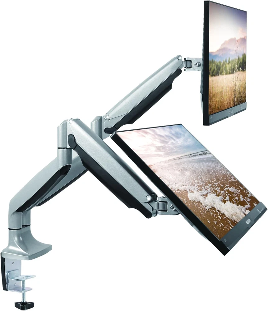 Menu Other Items Feedbacks About Us Contact Us Add To Favorites Universal Desk Mount for Dual Monitor - Fits Two 13-30" Monitors with Swivel & Clamp Space Saver: Extra room for your personal laptop or desktop computer is now easy to come by with this triple monitor stand. Simply attach your displays to each monitor arm and voila! More desk space. Universal Fit: Talk about the perfect size! The TechOrbits dual monitor desk mount is suitable for most 13in to 30in screens with 75mm x 75mm and 100mm x 100mm standard VESA mount patterns. Full Range of Motion: Engineered with SmartSWIVEL technology, the 2 monitor arms on this computer monitor mount can easily be turned or tilted in all directions for optimal visibility and minimal glare. Strong Support: Designed with premium, articulating gas springs and heavy-duty aluminum, our computer monitor stand for desk spaces can hold nearly 20lbs per self-balancing arm. Clamp-on Design: Secure this stand to your desk (0.4" to 3.3" in thickness) with the heavy-duty C-clamp or optional grommet. TechOrbits designed our SmartSWIVEL Dual Monitor Mount to easily move your screen anywhere you want to go! Our gas loaded springs make it easy to quickly move, spin, twist, or tilt your screen in any direction. We make it easy for you to take your presentation wherever you need it! Our universal mounting system can fit nearly all monitors 13" - 30" and under 19.8 Pounds . These stylish, floating arms attach to your desk with ease and provide your desk with elegant style. The SmartSWIVEL also helps: - Improve Organization: Store your supplies underneath your premium computer screens - Camouflage Cables Each mount is equipped with cable storage to prevent wires from cluttering your workspace. - Elevate Your Work: Raise your workstation and your work will follow! Buy yours now risk-free with our satisfaction . We love our customers and take great pride in our products, therefore we've included an extended 3-year . Buy yours now risk-free and If you aren't completely satisfied with your TechOrbits product, simply and will take care of you! Item Specification Item model number OF-MAA-10-C024 Movement Type Tilt Item Dimensions LxWxH 22.5 x 18.5 x 4.5 inches Mounting Type Tabletop Mount Color silver Series OF-MAA-10-C024 Material Aluminum Color silver Compatible Devices Monitor Item Weight 14.41 pounds Minimum Compatible Size 13 Inches Maximum Compatible Size 30 Inches Is Discontinued By Manufacturer No Product Dimensions 22.5 x 18.5 x 4.5 inches Dimensions Shipping Returns Additional Info Product Dimensions: 18.5 inches x 22.5 inches x 4.5 inches. Weight: 14.41 lb Fast shipping is very important for us. Our standard shipping service is FREE. Your order will be shipped within 1-3 business days upon full payment received. Most items are delivered within 3-5 business days, however, please allow 3-10 business days. We are shipping only to USA. We only ship to the confirmed Paypal address. We reserve the right to cancel any order for any reason at any time. We are not responsible for undeliverable addresses. We offer a 30 day return policy from checkout winning date. Your satisfaction is guaranteed! If for any reason you are unhappy with your item, just return it within 30 days for a full refund, minus shipping cost. Please contact us prior to initiating a return so that we can issue you a refund authorization. Items defective upon receipt must be packaged in their retail packaging as if new and returned with a detailed description of the problem. Return shipping fees are not refundable. We reserve the right to decline any returns if the above guidelines are not followed. All of our items, unless otherwise stated, will only run on 120 volts. Please check to make sure your country complies with these specifications. If you have a problem or question regarding your transaction please contact us before leaving any type of feedback. We will work with you to resolve any problem you may have.