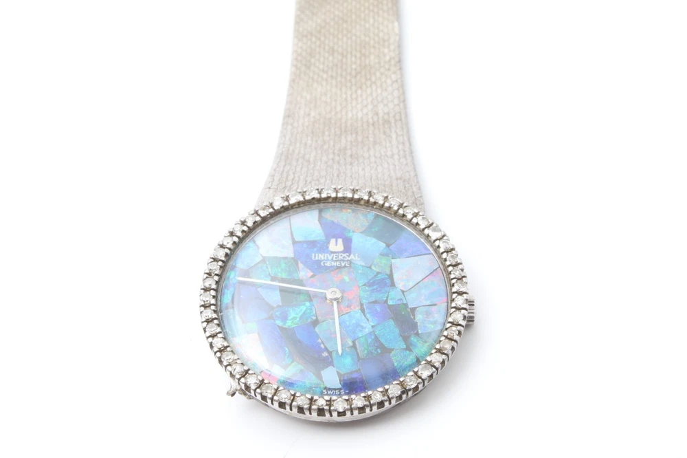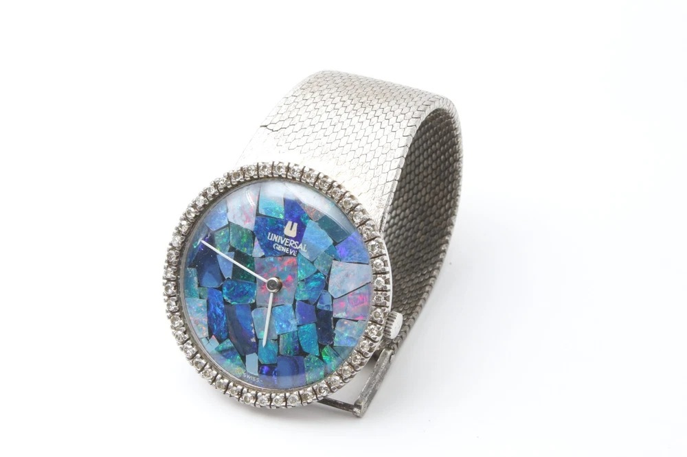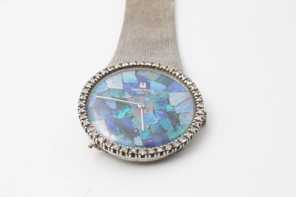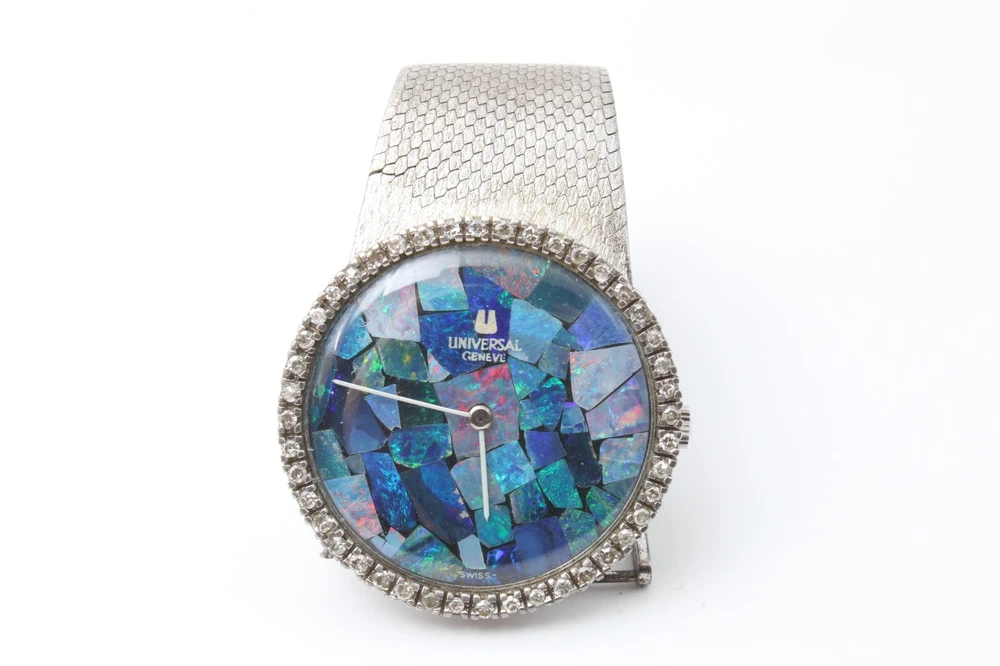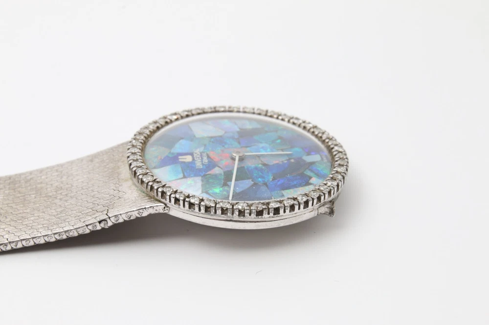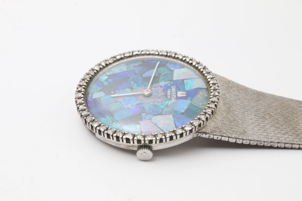 Dial Color: Opal Band Material: Silver Brand: Universal Movement: Mechanical (Manual) Type: Wristwatch Department: Men Dial Pattern: Mosaic Bezel Type: Diamond Display: Analog