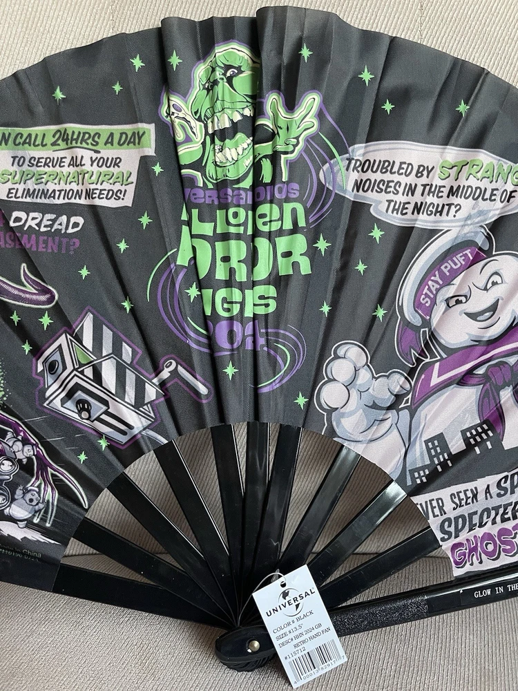 2024 Ghostbusters Universal Studios Halloween Horror Nights Hand Fan Glows In The Dark HHN 33 NWT