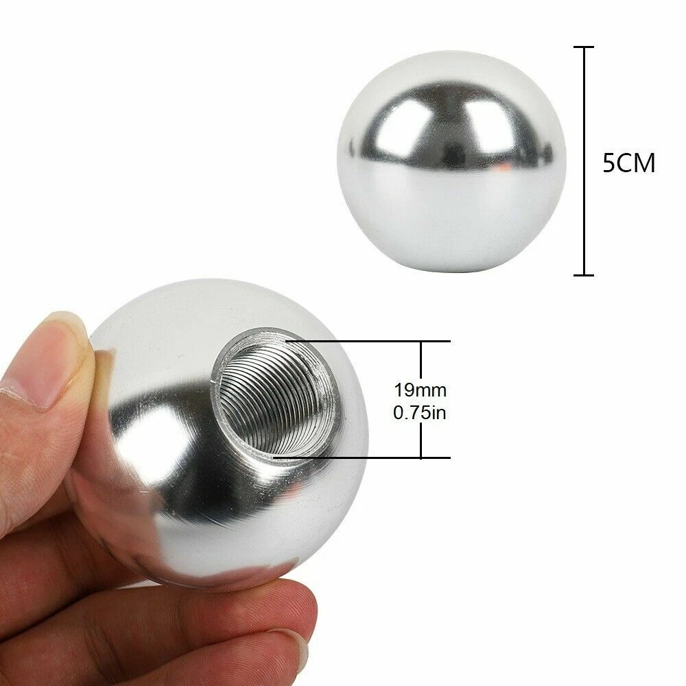 FITMENT: Fitment: Universal fit for most car (All manual car, no button shift knob automatic car) DESCRIPTION 100% Brand New and High Quality , Never Used or Installed Material : Made Of High Quality Aluminum Alloy Color : Silver Size : 50mm x 50mm / 2" x 2" ( As picture show ) Stylish and cool, unique, personalized and modified boutique. Comes with 3 thread adapters ( 8mm, 10mm, 12mm) Direct replacement of the original knob, no modification needed Easy to install INSTALLATION 1.Remove the Original Shift knob 2.Select the Suitable Adapter for Shift Knob in the 3 Adapters 3.Screw the Adapter on the Thread of Gear Shifter 4.Screw the Shift Knob on the Adapter Package Included: Aluminum Ball Shift Knob x1 Adapter x 3 (M8 M10 M12)