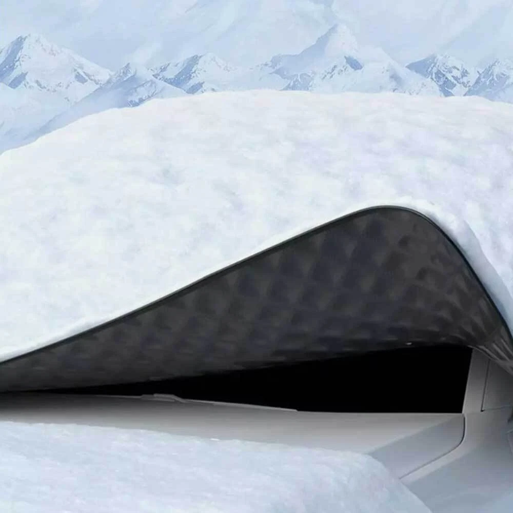 Package includes: 1 x Car Window Snow Cover Feature: 1. Comprehensive Protection: The car front windshield cover ensures year-round preservation of your vehicle. Its versatile and weather-resistant design withstands most weather conditions, and it also covers the roof for enhanced protection. 2. Windproof Design: With a worry-free anti-loss design, the snow ice protection cover securely attaches to your vehicle and won't blow away even in the strongest winds. Suitable for all seasons, it's practical and dependable. 3. Safe Usage: The car window snow cover incorporates a unique anti-theft mechanism to prevent theft and wind dragging, ensuring safety. It shields against rainwater, freezing mirrors, and features reflective warning stripes to prevent accidents, especially at night. 4. Waterproof and UV-Resistant: Made from durable, wear-resistant material, the windshield snow shield protects your windshield from rain, frost, snow, UV rays, and dust, offering four-season protection and comprehensive coverage for your vehicle. 5. Easy Installation: No tools are required for installation. By connecting the elastic strap to your rear-view mirror, you can easily set up the winter car front windscreen cover within minutes. It's also portable, easy to store and fold, making it a convenient accessory for your car. Specification: Material: aluminium film + non-woven fabric Colour: black Style : snow shield+12pcs magnets Size: 238x218x148cm/9.37x8.58x5.83inch Applicable models: universal