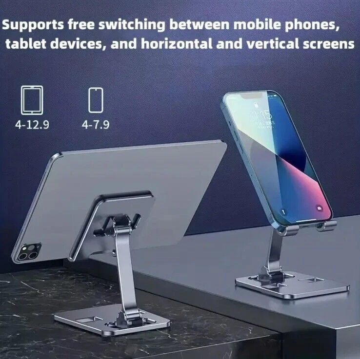 Universal Metal Desk Tabletop Phone iPad Tablet Stand Holder Foldable Adjustable Package Included: 1* Universal Adjustable Portable Phone & Tablet Desktop Stand Holder Mount OR 2* Universal Adjustable Portable Phone & Tablet Desktop Stand Holder Mount (1pack only 1 Universal Adjustable Portable Phone & Tablet Desktop Stand Holder Mount !!!) Item Description: 【 Height & Angle Adjustable iPad Holder】Our desk stand holder is in accordance with ergonomic design. Multiple Angles could be adjusted to meet your different viewing demand, providing you comfortable viewing angle which helps to fix your posture and reduce neck & back strain. 【Super Sturdy and Fully Protective Silicone Pad】The adjustable iPad holder stand with exquisite body, can hold your iPad steadily. Fully covered top silicone pads and weighted anti-slip base well protect your devices from scratches and sliding. The rubber padding on the bottom of the stand allows you to tap on the iPad without it sliding around. 【Foldable & Portable】The compact and light design makes it easy to put in your backpack or pocket. It's ideal for watching video, reading and studying, playing games, making video phone calls and video conferences, using Facetime and watching YouTube. A perfect companion for travel. 【New Upgraded Version】Made of Premium matel material. 5 times more sturdy than other phone stands. 📍Note: Color that you placed will be first choice to delivery. But if it is out of stock, other colors will be replaced. Please read this note as carefully as you can when you place an order. Please allow 1-3mm(0.039in) differs due to manual measurement. Due to the different display and different light, the picture may not reflect the actual color of the item. Thanks for your understanding. If you have any questions , please feel free to contact us. Welcome to buy it.😀 Feedback: 1) Your Feedback is really important to us,please take a few seconds to leave great feedback if you are satisfied with our product or service, thank you so much! 2) We always offer the lowest price for best goods and service to you. 3) Please contact us before leaving neutral(3 stars) or negative(1-2 stars) feedback.We will try our best to solve the problem and leave you a happy shopping mood here. Thank you!