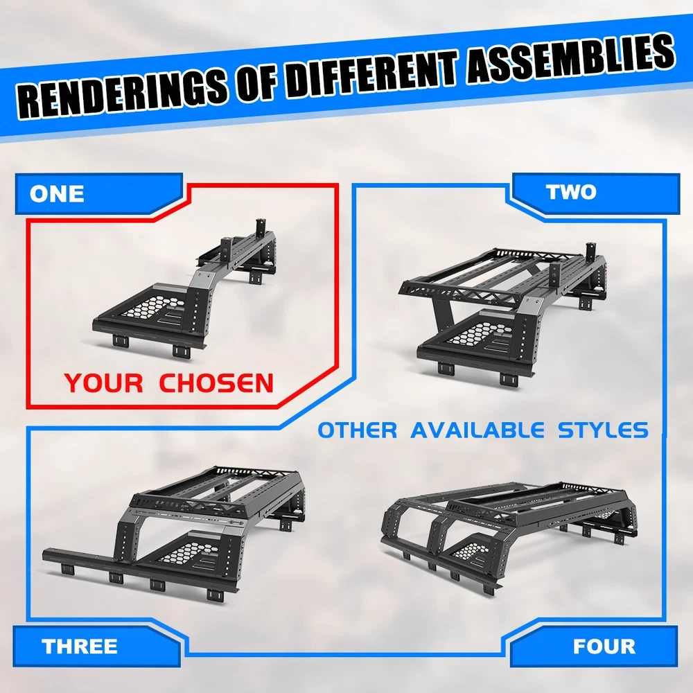 Head Lights Tail Lights Fog Lights Turn Signal Bumper Fender Flare Inner Fender Hubcaps Refrigerator Other Items for sale Head Lights Tail Lights Fog Lights Turn Signal Bumper Fender Flare Inner Fender Liners Portable Refrigerator For Universal Pickup Mid-Size Roll Bar Truck Adjustable Bed Rack Roof Adjustable Compatible with: For 1994-2004 Chevrolet S-10/GMC Sonoma For 2004-2012/2015-now Chevy Colorado/GMC Canyon For 1993-2011 Ford Ranger For 2019-2023 Ford Ranger For 2020-now Jeep Gladiator For 2001-2024 Toyota Tacoma For 2022-2024 Toyota Tundra For 2001-now Nissan Frontier For 2004-now Nissan Titan For 2006-2014/ 2017-now Honda Ridgeline Features Full New: 100% brand new and premium quality. Fitment: Compatible with All Full Size Trucks Material: The heavy duty steel construction and black powder coat finish make your truck feel good. Perfect for use in extreme temperatures and weather. Unique Design: Cold-rolled steel plate with black powder coating, equipped with welding technology, safe and non-toxic, has excellent anti-corrosion performance and electrical insulation performance, greatly improves the service life of the product, and effectively prevents the generation of rust. Warranty: 1 year manufacturer's warranty, 60-day return policy, premium quality and after-sales service, you can buy with confidence! Professional After-sales: If you have any questions, you can contact us, we have a professional after-sales team to solve your doubts! Bed Rack 1.Included a set of LED Lights mounting bracket 2.Widith adjustment range of 62.2-72.8 inches 3.Dimension-Length 30.4" 4.Height adljustment range of 14-19 inches 5.Works With or Without Factory Bed Side Rail Mounts 6.Micro-Texture Black Powder Coat Finish 7.With Raised Base to Accommodlate Tonneau Cover 8.Can be secured by punching holes in the bed shouldlers or Locked to factory sicdle rails Package Includes 1* Front Modular Overland Bed Rack 1* set of Mounting Accessories
