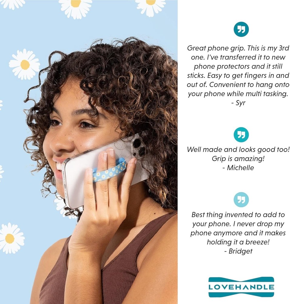 Universal Phone Grip for Smartphones & Mini Tablets - Phone Holder for Hand - Wireless Charging Compatible - Made in The USA - Solid Black THIN AND SLEEK: This pocket-friendly phone holder makes for easy texting, selfies, and photos with a one-handed or even no-handed grip. It has an ergonomic design and easily affixes to your phone with a removable, no-residue 3M adhesive. Compatible with all smartphones and tablets COMPATIBLE WITH MOST DEVICES: Made to fit most smartphone and tablet models, this phone strap has an easy-to-use, intuitive design that doesn't get in the way. Measures 2.63" x 0.88" x 0.13". EASY AND CONVENIENT: Great for taking crisp, one-handed photos and videos, this phone grip can be flipped to the back of your hand to make room when you need it, and is a convenient way to hold your device while jogging or cycling. APPLICATION: Clean the back of your case. Peel the 3M paper backing from the grip and place it in the center low enough for your thumb to reach the front, and hold for 90 seconds. For glass or silicone, use the additional clear 3M adapter adhesive.