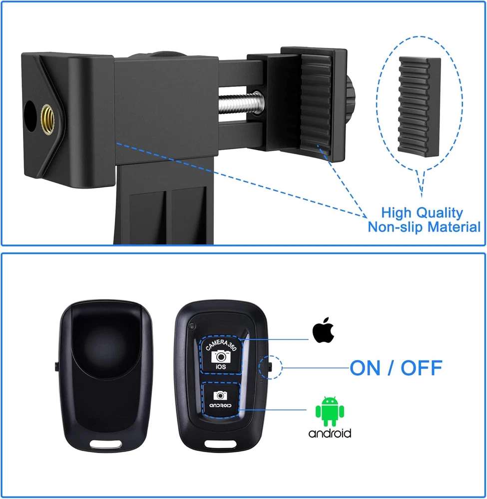 Store New Arrivals Add to Favorite View Feedback Contact Fast deliveries to the customer's home Quality customer service John Make the customers happy! Universal Phone Tripod Mount Adapter with Wireless Camera Remote , Cell Phone Holder with Adjustable Clamp for Selfie Stick Monopod Compatible with Iphone, Samsung and so on , Wrist Strap Included Description Easy Install With 360 Degree Rotation: Zttopo Tripod Phone Holder will help you shoot steady video and different angles of pictures. Portable with light, easier to carry for a trip or any outdoor activity. It will be your capable assistant tool. Reliable Quality And Safer: Hold your smartphone steadily with or without a case also the screw is secure with a tight grip and will not damage the exterior of your phone. Convenient And Easy Hands-Free Shutter Control For Mobile Devices: Perfect for taking selfies and steady tripod shots, operates up to 30 feet (10m): take photos or video even when at a distance from your device. Universal 1/4" Standard Screw: 100% compatible with any regular-sized tripod, monopod, and selfie sticks Ring Light with standard 1/4" screw thread at the bottom Wide Range of Devices Compatible: Compatible with Most CELLPHONE, Including for iPhone 15 14 pro max 14 plus 13 12 11 mini, SE, Xs xs max XR X, 8, 8 Plus, 7, 7 Plus, 6, 6 Plus; for Samsung Galaxy S22 S21 S20 S10 S10 plus S9+, S9, S8, S7, S7 Edge, S6, S6 Edge, S5, S4, S4 Mini, S5, S5 Mini, Note 20, Note 10 Note 8; Cameras, Camcorders and other devices (width between 56mm - 105mm ) . WHAT YOU GET:1x phone tripod mount adapter 1x remote shutter 1x hand strap, 12 Months warranty Product Description The video showcases the product in use. The video guides you through product setup. The video compares multiple products. The video shows the product being unpacked. The 0.59" width phone clamp holder jaws can grip a phone with or without a case The non-slip rubberized surface keeps your cellphone stable and protects it from sliding down. Work with tripods, monopods, selfie sticks, ring lights, and more featuring a 1/4 screw mount. (Note - Tripods with a 3/8" screw require an adapter) The Bluetooth remote can help you take photos easily. also, it comes with an adjustable hand strap. you can bring it to any outdoor activity. How to pair? 1, Turn on the remote by switching the on/off button, a blue light flashing, 2, Active Bluetooth function on the phone and search new device. 3, select the device "AB Shutter3" and pairing. 4, open your phone camera and enjoying your picture time. Can't taking picture and only adjusts the volume of the phone. Please change the mobile phone settings and change the shutter key to the volume key. Item model number 255 Whats in the box hand strap, cellphone mount, bluetooth remote Mounting Type Tripod Color Black Other display features Photography Country of Origin China Compatible Devices Smartphones Item Weight 1.06 ounces Batteries 1 CR2 batteries required. (included) Special features Lightweight Compatible Phone Models iPhone 11 Package Dimensions 7.17 x 4.72 x 1.5 inches ABOUT US We offer the best prices around on high quality products. Our E-store includes media such as books, movies, music and games while offering electronics, toys, sporting apparel, clothing, tools, general home, garden items and more. SHIPPING We are always working hard to ensure your package arrives as soon as possible. Please understand that some factors like weather, high postal traffic, and the performance of shipping companies are outside of our control. We offer free shipping to the lower 48 states and ship within 2 business days of payment, usually sooner. We do not accept P.O. Boxes. Please provide a physical address. For shipping outside of the continental USA, we only use eBay's Global Shipping Program. The item is shipped to KY and then sent to the rest of the world. International customers are responsible for all duties and taxes. Continue to 'check out' to calculate costs for shipping the item to your country. Messages regarding eBay's Global Shipping Program MUST be directed at eBay EXCLUSIVELY. RETURNS We offer a 30-Day Return Policy on items in which you are not completely satisfied with. You have the option of a full-refund or an exchange of the item. No returns are available on items shipped outside of the USA PAYMENT We accept PayPal. CONTACT US This page content is yet to come Please ad us to your favorite seller and visit again later Thank You CUSTOMER SATISFACTION We try our very best to make sure every customer is completely satisfied. If there's a problem, message us! We're happy to help. WE ACCEPT