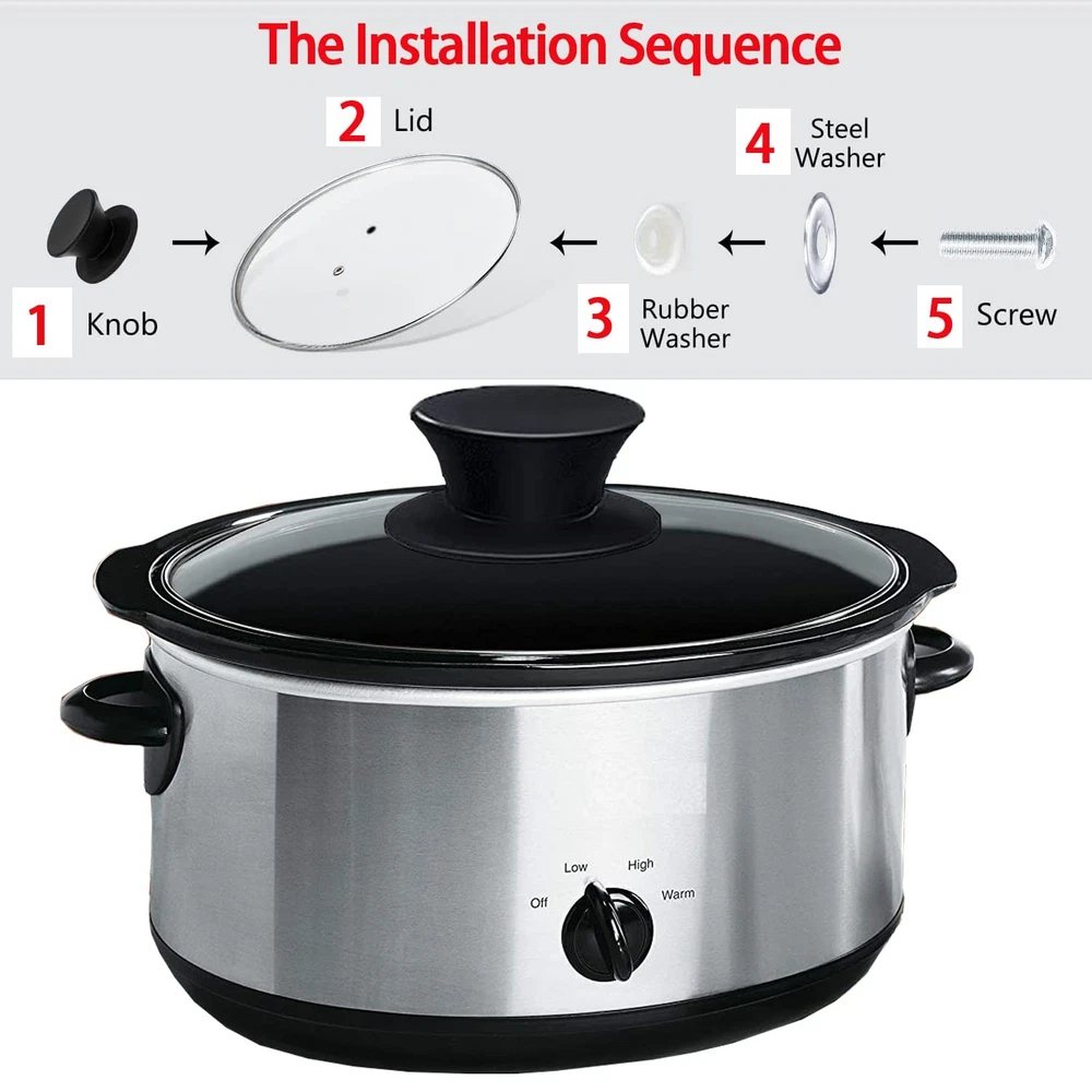 [High Grade Silicone] - This lid handle knob is made of high grade silicone. The lid handle is tight and durable and will not break. for crockpot lid handle replacement. [Parcel Content] – We’ve included 1 x knob, 1 x screw, 1 x silicone washer and 1 x stainless steel washer you’ll need to replace old or broken pot handles in seconds. Simply unscrew the old one, mount the new one, and secure it in place to make it like new again. [Widely Applications] - The lid knob suitable for many kinds of cookware pot lid covers, such as kettle, oil pot, frying pan, pot lids, saucepan Lids, pan lids ,Casserole Glass Lid Pot, rival crock pot lid, just replace the lid knob then you can save your favorite and functional Lid. [Easy Installation] - Just disassembling the old handle, and put the knob, rubber gasket and metal gasket correctly, and then use screw to tight them, finish the installation in minutes. Let your old pot lid to new life! [ 100% Hassle-Free Guarantee ] We are so confident you'll think we have the best silicone pot lid knobs on the market. If you have the slightest problem with our product, please feel free to give us a message and we will send you a new one right away without any cost on your side or full money back. We go out of our way to make sure every customer is happy and satisfied with our product and service.