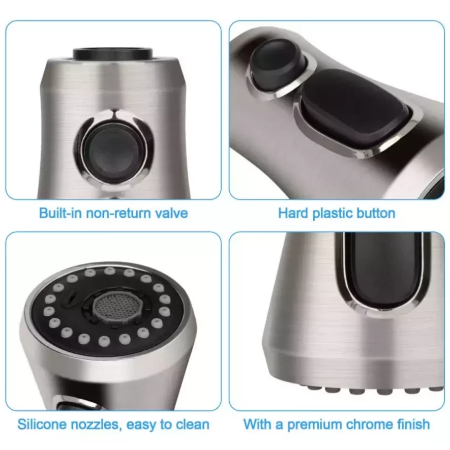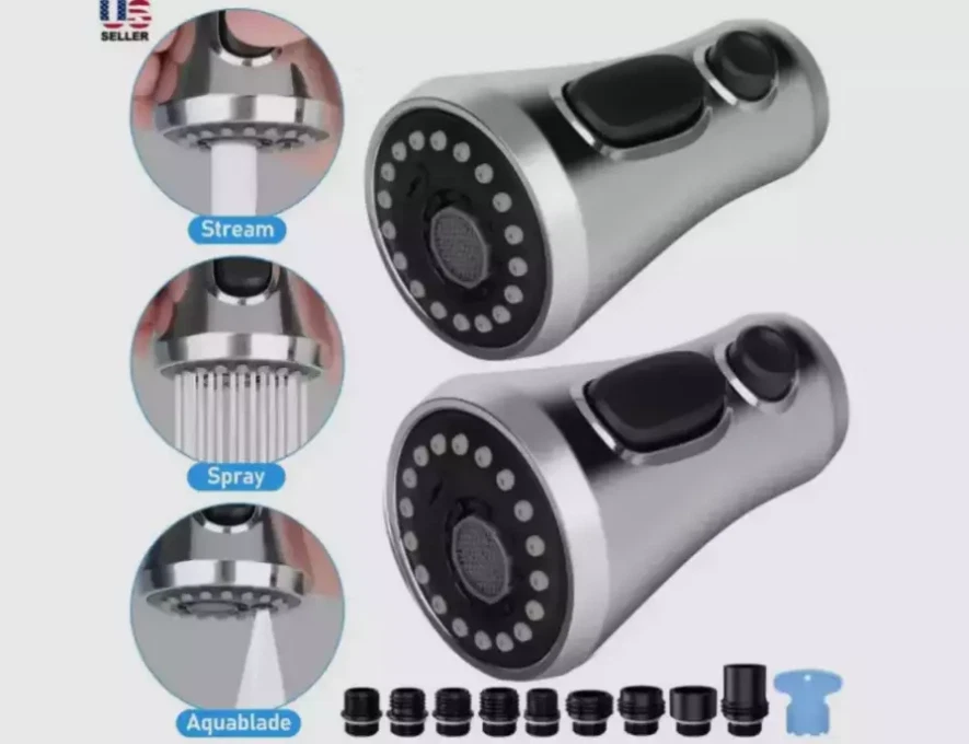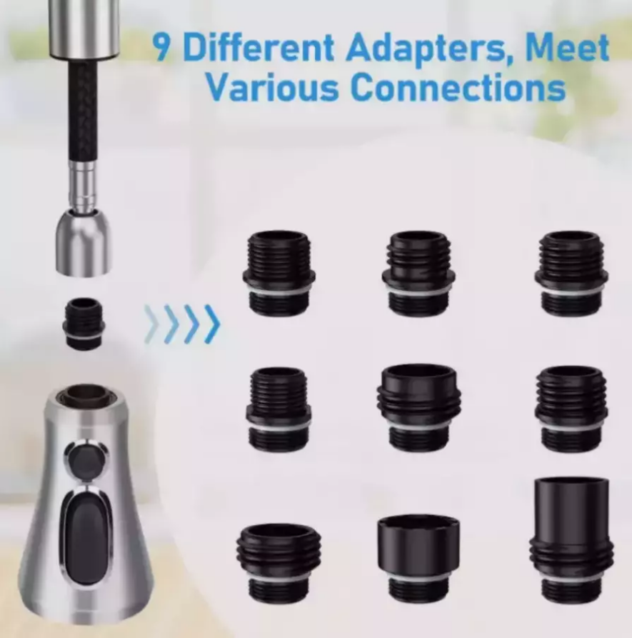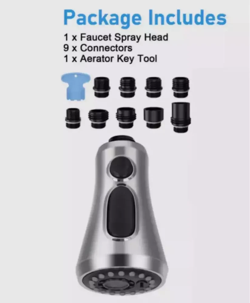 Product Feature : 【Premium Quality】 Crafted from high-grade ABS plastic with a premium chrome finish, our pull-down faucet spray head ensures durability and rust resistance, providing everyday convenience for various rinsing and filling needs. 【9 Different Adapters】 Our faucet spray head replacement includes 9 adapters, catering to various connections. Compatible with major brands of faucet hose connectors such as Moen, Delta, AquaSource, Kohler, Hansgrohe, Grohe, and so on. Please note that it is not compatible with most Pfister or Glacier Bay hoses. 【3-Mode Spray Options】 Enjoy three water modes: stream, spray, and aquablade. The aquablade mode provides powerful flushing to remove food debris. Easily switch between water modes with the push of a button. 【Removable & Washable Faucet Aerator】 We provide a free aerator key for easy removal or replacement of the faucet aerator for cleaning purposes. The interior multi-mesh aerator ensures a quiet, no-splashing aerated stream, filtering out most impurities. Cleaning the aerator ensures a continuous flow of clean water. 【Easy to Install】 Installation is a breeze! No tools required. In just minutes, unscrew your old faucet head and replace it with our new one for immediate use. Product Specification: Type: Pull Down Faucet Material: Engineering-grade ABS plastic Outer Diameter: G1/2 (20mm) Connection: G1/2 Male Thread, 5/8-16 UN, 5/8-18 UNF,4 Male Thread(17.1mm, 16.4mm, 15.5mm and 14mm) Overall Height: 4.09". (104 mm) Max. Width: 2.24". (57 mm) Package Included: 1 x Faucet Spray Head 9 x Connectors 1 x Aerator Key Tool Shipping * All items are in US warehouse and will be dispatched within 24 hours after receipt of payment. Please note that items purchased on weekends and Bank Holidays will be dispatched on the next working day. * It usually takes 3-5 working days for the delivery. But, the transit time is highly depend on Postal Service after we dispatched.If you have any problems, please feel free to contact us. * We ship items to your eBay confirmed address only. Please make sure your address on eBay is matched with your shipping address before you pay. * We are unable to take any responsibility for wrong address, any custom delay or tax. Returns * If the item can't works fine, please check twice to confirm that the item is defective, and contact our customer service representative asap let's know the detailed problem, we will do our best to server you. * If the package damaged during the freight, please refuse to sign for the package and return to us, then contact us promptly. * All of the Non-Seller mistake returns for refund are subject to 20% re-stock fee. And buyer should pay for the return shipping fee.(E.g choose the wrong size or wrong item) * We only accept the original package. Please make sure the item have No man-made sabotage. If you purchased in improper condition, please Note that the shippping and handling fee will not be refunded, all return shipping fee should paid by the buyer unless item DOA. * Guaranteed to Not be DOA and 100% working. Warranty covers replacement or repair. * Buyers are responsible for part return shipping fees on return package. * We reserve the right to refuse any returns for objective reasons. Contact Us * If you are dissatisfied for any reason, please don't leave negative/neutral feedback without asking. We work hard to make sure EVERY CUSTOMER 100% SATISFIED and resolve any problem for you. We always l eave positive feedback to all our customers. * If you are satisfied with the product you received,please leave us Positive Feedback and 5 Scores DSR * We are strive to providing 100% satisfaction services for our customers. Your satisfaction is our greatest pursuit. Positive Feedback is very important to us! Thank you!