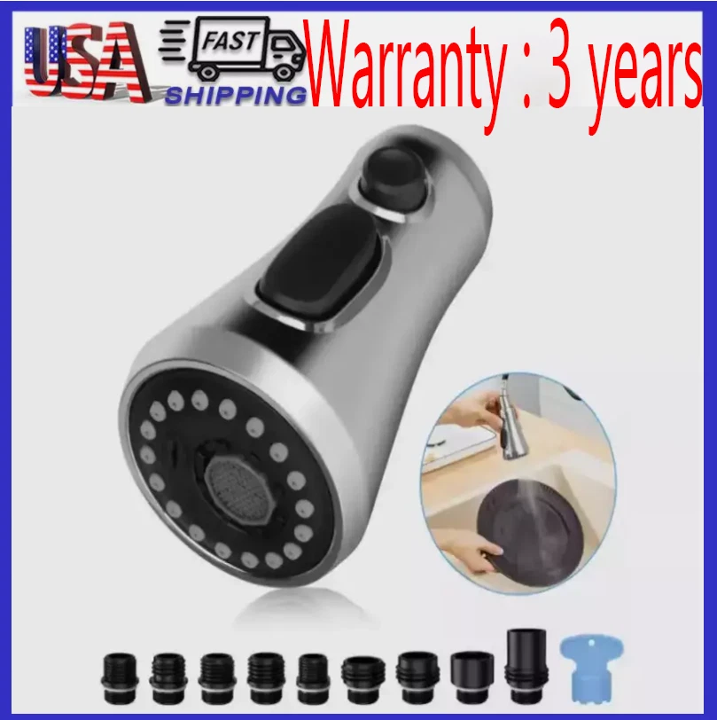 Product Feature : 【Premium Quality】 Crafted from high-grade ABS plastic with a premium chrome finish, our pull-down faucet spray head ensures durability and rust resistance, providing everyday convenience for various rinsing and filling needs. 【9 Different Adapters】 Our faucet spray head replacement includes 9 adapters, catering to various connections. Compatible with major brands of faucet hose connectors such as Moen, Delta, AquaSource, Kohler, Hansgrohe, Grohe, and so on. Please note that it is not compatible with most Pfister or Glacier Bay hoses. 【3-Mode Spray Options】 Enjoy three water modes: stream, spray, and aquablade. The aquablade mode provides powerful flushing to remove food debris. Easily switch between water modes with the push of a button. 【Removable & Washable Faucet Aerator】 We provide a free aerator key for easy removal or replacement of the faucet aerator for cleaning purposes. The interior multi-mesh aerator ensures a quiet, no-splashing aerated stream, filtering out most impurities. Cleaning the aerator ensures a continuous flow of clean water. 【Easy to Install】 Installation is a breeze! No tools required. In just minutes, unscrew your old faucet head and replace it with our new one for immediate use. Product Specification: Type: Pull Down Faucet Material: Engineering-grade ABS plastic Outer Diameter: G1/2 (20mm) Connection: G1/2 Male Thread, 5/8-16 UN, 5/8-18 UNF,4 Male Thread(17.1mm, 16.4mm, 15.5mm and 14mm) Overall Height: 4.09". (104 mm) Max. Width: 2.24". (57 mm) Package Included: 1 x Faucet Spray Head 9 x Connectors 1 x Aerator Key Tool Shipping * All items are in US warehouse and will be dispatched within 24 hours after receipt of payment. Please note that items purchased on weekends and Bank Holidays will be dispatched on the next working day. * It usually takes 3-5 working days for the delivery. But, the transit time is highly depend on Postal Service after we dispatched.If you have any problems, please feel free to contact us. * We ship items to your eBay confirmed address only. Please make sure your address on eBay is matched with your shipping address before you pay. * We are unable to take any responsibility for wrong address, any custom delay or tax. Returns * If the item can't works fine, please check twice to confirm that the item is defective, and contact our customer service representative asap let's know the detailed problem, we will do our best to server you. * If the package damaged during the freight, please refuse to sign for the package and return to us, then contact us promptly. * All of the Non-Seller mistake returns for refund are subject to 20% re-stock fee. And buyer should pay for the return shipping fee.(E.g choose the wrong size or wrong item) * We only accept the original package. Please make sure the item have No man-made sabotage. If you purchased in improper condition, please Note that the shippping and handling fee will not be refunded, all return shipping fee should paid by the buyer unless item DOA. * Guaranteed to Not be DOA and 100% working. Warranty covers replacement or repair. * Buyers are responsible for part return shipping fees on return package. * We reserve the right to refuse any returns for objective reasons. Contact Us * If you are dissatisfied for any reason, please don't leave negative/neutral feedback without asking. We work hard to make sure EVERY CUSTOMER 100% SATISFIED and resolve any problem for you. We always l eave positive feedback to all our customers. * If you are satisfied with the product you received,please leave us Positive Feedback and 5 Scores DSR * We are strive to providing 100% satisfaction services for our customers. Your satisfaction is our greatest pursuit. Positive Feedback is very important to us! Thank you!