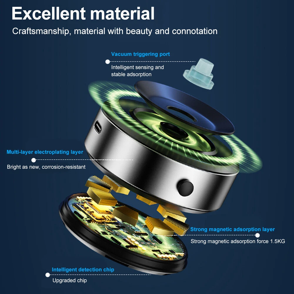 Features: 1. Strong magnetic suction and electric vacuum adsorption double insurance: Adopting advanced magnetic suction technology, it can instantly and firmly adsorb the cell phone to ensure that the phone will not fall off during bumps, shaking and even emergency braking. At the same time, the electric vacuum adsorption function further enhances the fixing effect, the two complement each other to provide double solid protection for the phone, so that you can drive without worrying about the phone shifting. 2. Wide compatibility: Whether it's a large-screen business phone or a compact fashion phone, whether the phone comes with a case or not, this car magnetic phone holder can easily cope with it. Its strong magnetic suction and adsorption ability can be adapted to a variety of different models, sizes and materials of cell phones, to meet the diverse needs of different users. 3. Convenient installation and use: The installation process is extremely easy, no need for complicated tools and tedious steps. Simply fix the bracket in a suitable location in the car (such as the center console, etc.), and then gently put the phone can be automatically adsorbed. Moreover, it is also easy to take out the cell phone, one-hand operation can be easily completed, will not distract your attention in the driving process, which greatly improves the convenience of use. 4. Protect the phone and car interior: The contact area between the holder and the cell phone is made of special material and design, which will not scratch the surface of the cell phone. At the same time, in the process of adsorption and disassembly, it will not leave any traces or damage to the car interior, effectively protect your car interior, so that your driving environment is always neat and beautiful. 5. Stable and durable: The structure of the whole cell phone holder is designed to be sturdy and stable, able to withstand long time use and complex road conditions. The magnetic component and electric vacuum adsorption system have gone through strict quality testing and have excellent durability, and are not easy to weaken suction or malfunction, providing you with a long-term and reliable use experience. Specification: Name: electric vacuum adsorption cell phone holder Material: ABS + zinc alloy Color: black/silver/poh color Size: 6.5*6.5*3cm/2.52*2.52*1.18 inches Battery capacity: 110 mAh Number of magnets: 16PS Suction pressure: 18Kpa-65Kpa Applicable models: 4.7-inch smartphone or above Package Includes: 1 x Stand 1 x USB charging cable 2 x Dusting cloth 1 x Non-marking sticker 1 x Magnetic attractor sheet Attention: 1. Due to different light and screen settings, the color of the item may be slightly different from the picture. 2. Please allow 1-2cm size difference due to different manual measurement. On Nov 26, 2024 at 23:22:49 PST, seller added the following information: