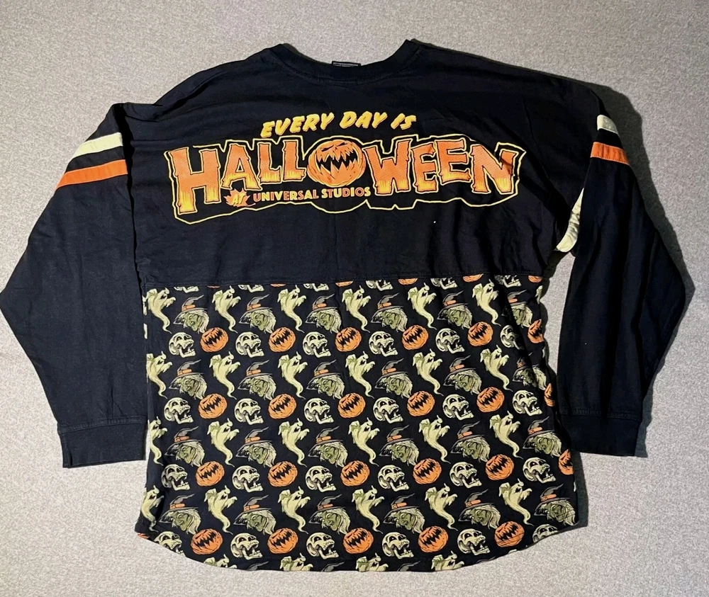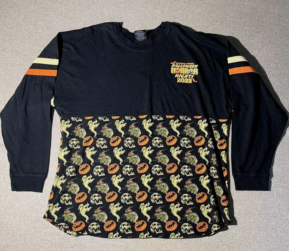 Very good used condition. Halloween Horror Nights TShirt Long Sleeve Pullover black orange Skulls Ghosts Pumpkins See pictures for details and measurements. Ship daily - fast delivery! Buy multiple items and save on shipping! Flat $10 shipping charge for 2+ items! Free returns within 30 days of purchase! New items added to our store daily-check back soon!