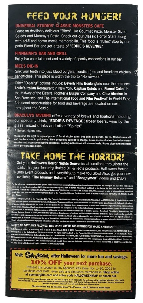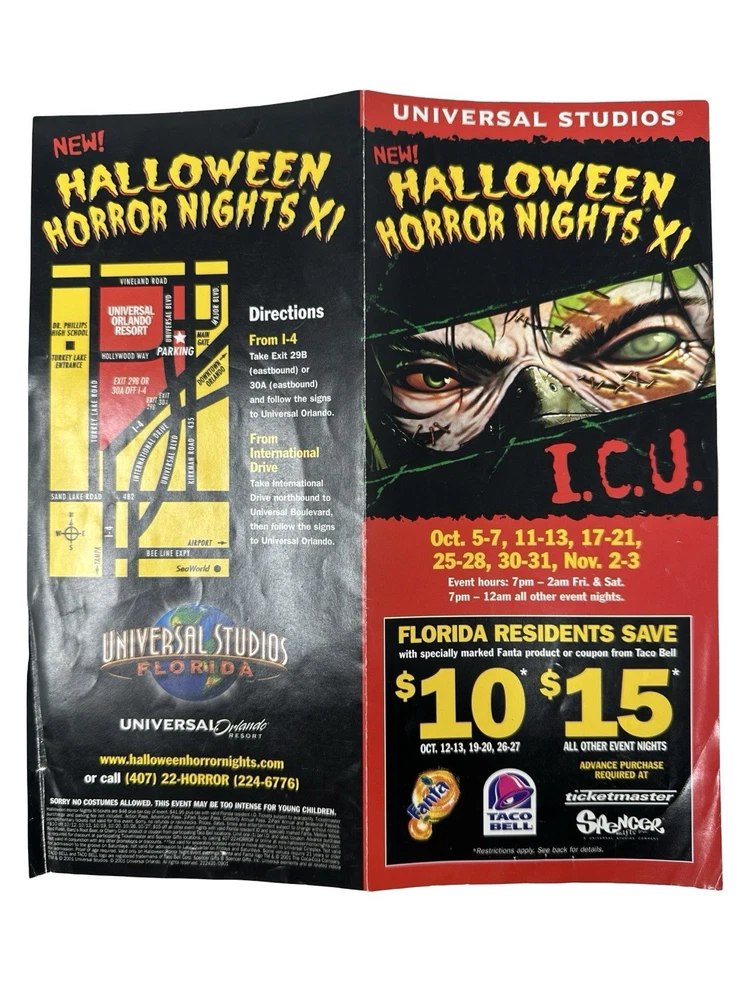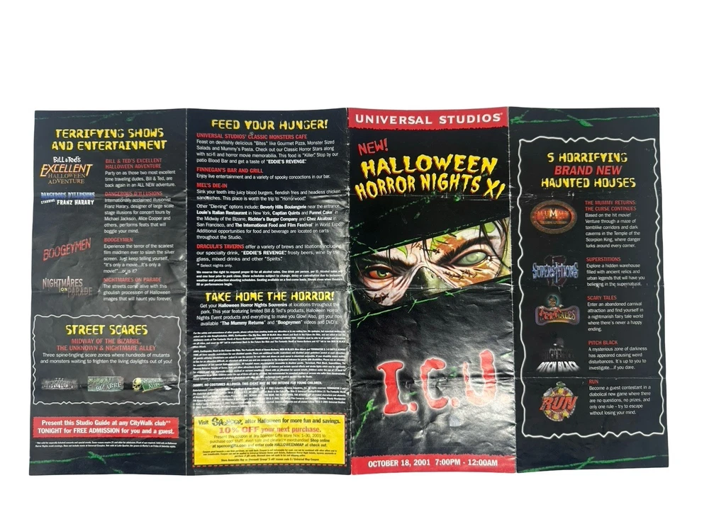 Universal Studios Halloween Horror Nights XI 2001 Event Guide Map ICU Post-9/11