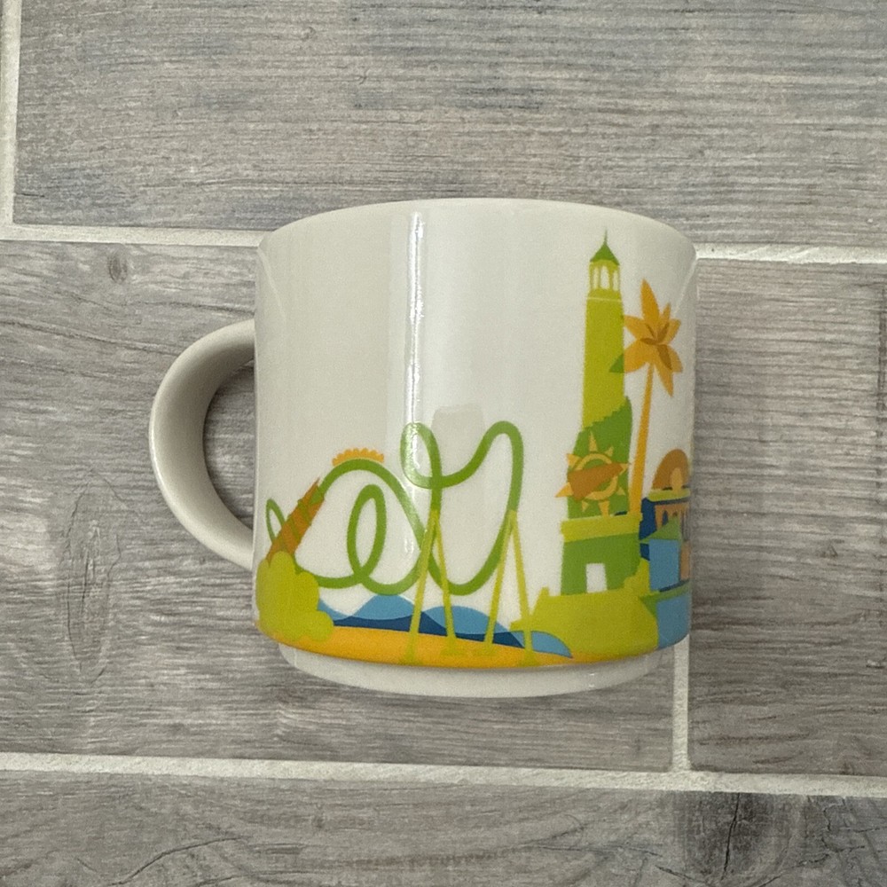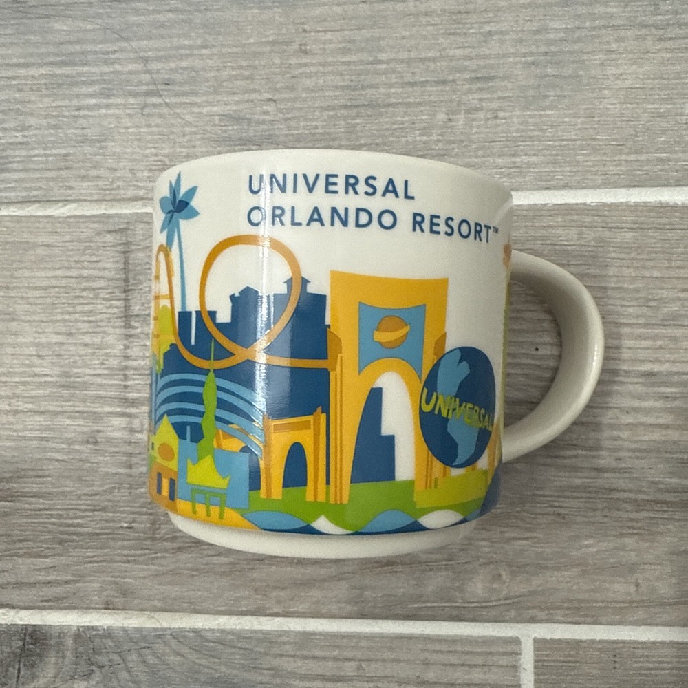 The "UNIVERSAL STUDIOS ORLANDO RESORT Starbucks You Are Here Series 2016 Retired Mug" is a collectible mug from Starbucks featuring a multi-color design. Created in 2016, this original mug is part of the Coffee & Tea theme and is now retired from the You Are Here Series collection. The mug likely showcases iconic landmarks or elements associated with Universal Studios Orlando Resort, making it a sought-after item for Starbucks and theme park enthusiasts alike.