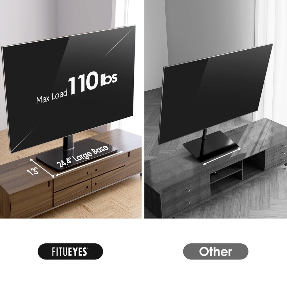 Universal TV Stand Mount for 43-80 85 inch TVs, Swivel Tall TV Mount Stand, Table Top TV Stand Base Replacement, Height Adjustable TV Table Stand, Glass Base, Max Holds 110lbs 【Universal TV Stand】Our universal TV stand is compatible with most Samsung/Sony/LG/TCL/Sharp 43-85” TVs (VESA 200x200 to 600x400).This TV stand base replacement is engineered to hold 110 lbs of cinematic power, featuring dual security locks and lab-tested stability.Always verify your TV’s VESA pattern! 【±30°Fluid Swivel for Free Control】Dominate your viewing angles with a 30° left/right swivel—This swivel TV stand mount is for gaming marathons, glare-free workouts, or hosting movie nights. The TV stand for bedroom's self-developed structure ensures the smooth rotation to match your dynamic lifestyle. 【10-Level Height Customization】This tv stand mount can be adjusted from 30.2'' to 43.2'',it will adapt your TV’s height across 5 adjustable pole positions and 2 bracket tiers,perfect for ergonomic viewing in bedrooms or living rooms. The height adjustable TV stand features the Anti-tip engineering to keep 85 inch screens rock-solid! 【Design with peace of mind for you】Our 85 inch TV stand is built with a 24.4"×13" tempered glass base and 3mm non-slip silicone pads. This table top TV stand was survived in Laboratory professional test! Hidden cable tunnels organize consoles, routers, and soundbars for clutter-free elegance. 【Easy Installation】No drills, no frustrationl.The table TV stand is Specially designed for you who prefer easy installation, this quick assembled table top TV stand from eliminates drilling, confusion, and frustration. perfect for renters and DIY newbies. Your weekends belong to you, not wall holes This adjustable desktop TV stand combines universal compatibility with heavy-duty stability, engineered to securely hold flat or curved screens from 43" to 85" (optimized for 50-80" TVs) weighing up to 110 lbs. The universal TV stand base replacement's versatile VESA mount supports 10 hole patterns from 200x200mm to 600x400mm, seamlessly fits for Samsung, Sony, LG, and other major brands. This stable TV stand mount features anti-tip base with 3mm non-slip silicone pads ensure lab-certified stability, even for high-energy gaming or movie nights. Enjoy dynamic viewing with our swivel table top TV stand's smooth 60°swivel range (30° left/right).The TV stand for bedroom adapts to bedroom low-profile setups or elevated living room entertainment centers.This quick assembled desktop TV stand simplifies installation in 15 minutes using intuitive color-coded guides and self-leveling feet for carpets, tiles, or hardwood floors—ideal for renters, gamers, or anyone seeking a clutter-free upgrade without wall drilling. Shipping We offer FREE shipping on all orders! We ship within Three business days of payment, usually sooner. We use a selection of shipping services such as UPS, FedEx, USPS etc. We only ship to the lower 48 states, no APO/FPO addresses or PO Boxes allowed. Local pickups and combined shipping options are not provided at this time. Return You can return a product for up to 30 days from the date you purchased it. Any product you return must be in the same condition you received it and in the original packaging. Please keep the receipt. Payment We accept payment by any of the following methods: PayPal Please pay as soon as possible after winning an auction, as that will allow us to post your item to you sooner! Feedback Customer satisfaction is very important to us. If you have any problem with your order, please contact us and we will do our best to make you satisfied. Contact Us If you have any queries, please contact us via ebay. We usually respond within 24 hours on weekdays. Please visit our eBay store to check out other items for sale! Thank you for shopping at our store.