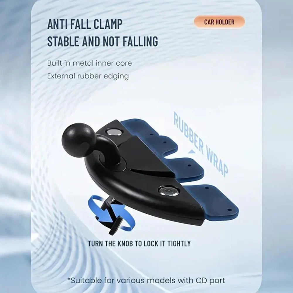 This tablet stand is a game-changer for car rides! The sturdy grip keeps my phone secure with its adjustable arms and silicone padding, while the CD slot mount keeps my view clear. The 360° ballhead joint makes positioning effortless, and I love how quick and easy it is to use with one hand—perfect for navigation and hands-free calls. No wobbling, no blocked CDs, just a rock-solid mount that makes driving safer and more convenient. Highly recommend!