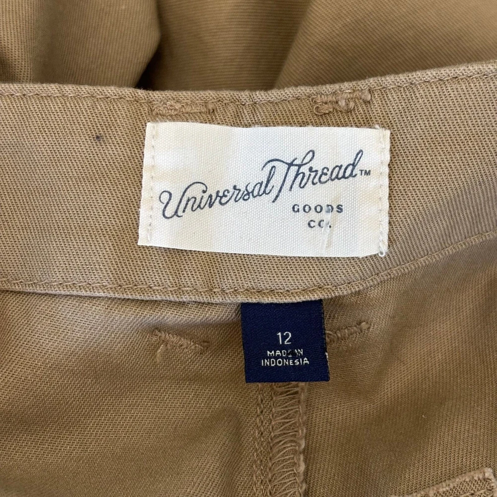 Size Type: Regular Closure: Zip, Button Fit: Regular Rise: High (Greater than 10.5 in) Size: 12 Occasion: Business, Casual, Formal, Party/Cocktail, Travel, Wedding, Workwear Department: Women Garment Care: Machine Washable Leg Style: Wide-Leg Pattern: Solid Waist Size: 35 in Brand: Universal Thread Color: Beige Vintage: No Season: Fall, Spring, Summer, Winter Features: Easy Care, Lightweight, Comfort, Pockets, Stretch Theme: Preppy, College, Punk, Grunge, 90s, 80s Style: Cargo Type: Pants Inseam: 30.5 in Seller Notes: “Pre-owned condition: minimal to no signs of wear, no stains or holes” Front Type: Flat Front