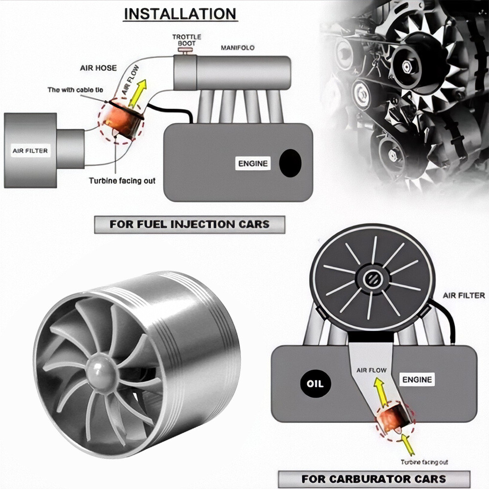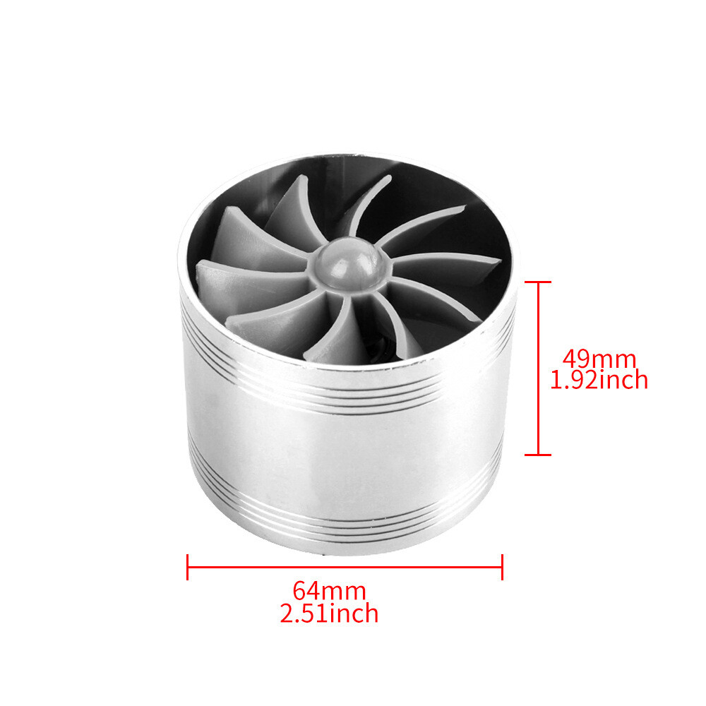 Car Air Intake Turbonator Single Fan, Single-Sided SUV Turbo Car Engine Turbo, Multi-Functional Turbo Supercharger, Auto Engine Performance Upgrade for RV, camperr, Truck, Convertible, SUV Feature 【Product Name】Car Air Intake Turbonator Single Fan 【Size】As the pictures show 【Color】Silver (We also have black/red/blue/silver, if you like other colors, you can email us to send you a link or directly into the store to find) 【Material】Aluminum alloy + Plastic 【Quantity】1 Set Specification 【Multi-Functional Supercharging】 Enhance your car's torque and energy efficiency with improved intake, while making your throttle more responsive and promoting combustion. Experience advanced technology at its finest. 【Quality Assurance】 This car turbine is made of Sturdy and aluminum alloy material, this car turbine is and strong with long service life 【Hassle- Assembly】 Installed in the intake hose between the bellows and the throttle. Choose the right rubber collar according to the diameter of the intake hose. 【Wide Application】 Streamline your vehicle's engine with our innovative car turbine. Ideal for enhancing auto, rv, car, travel, , truck, convertible car, and SUV performance. 【Effortless Driving】 Our car turbine's lightweight design allows for a more effortless driving experience, providing a comfortable and relaxed ride without sacrificing performance. 【Note】Install 10cm to 30cm in front of the throttle valve. 【Note】Installation instructions are not included with the product. If you have any installation problems, please contact us by e-mail, we will provide you with electronic installation instructions or installation video. Installation instructions Installed in the original air box and throttle between the air intake hose, in the installation of the original car depends on the size of the diameter of the air intake hose and configuration of the power wheel itself with the thickness of the rubber collar, the power wheel with the three rubber collar has a different thickness, installation in accordance with the size of the diameter of the intake hose to the appropriate choice. Fitment: Universal Fitment If there is any fitment uncertainty as to whether or not your car will be able to use this product, you can contact us by email! Package included: 1* Car Air Intake Turbonator Single Fan Note Manual measurement may exist 1-2cm error, please understand Please be reminded that due lighting effects, monitor's brightness/contrast settings etc, there could be some slight differences in the colour tone of the website's photo and the actual item. If there is an unexpected delay in transit of your goods, or if you find there are some unexpected problems with the product after you receive it, we sincerely hope you will email us first instead of opening a case or give bad reviews, it is very important to us and I appreciate your understanding. We guarantee that you can get a satisfactory solution.