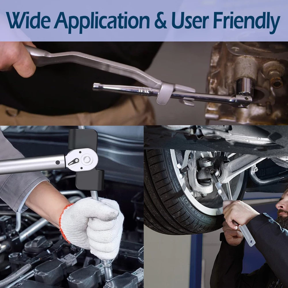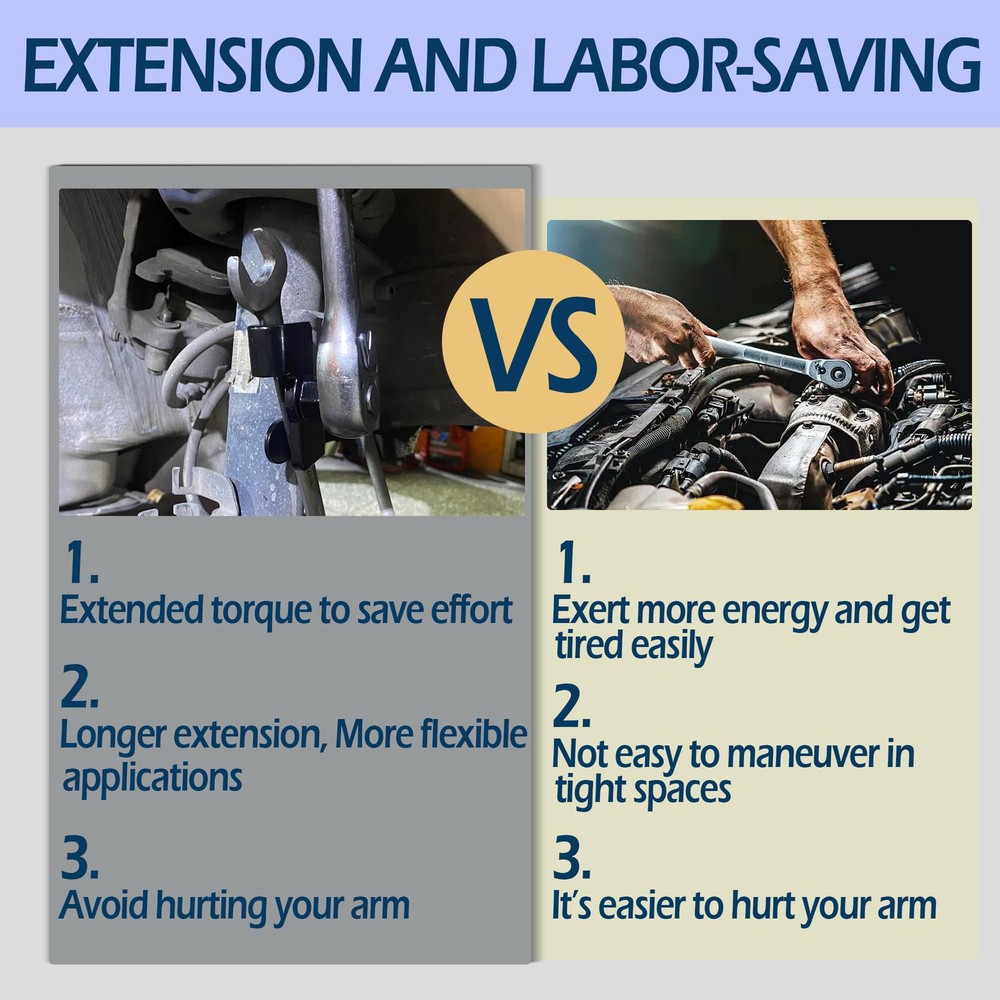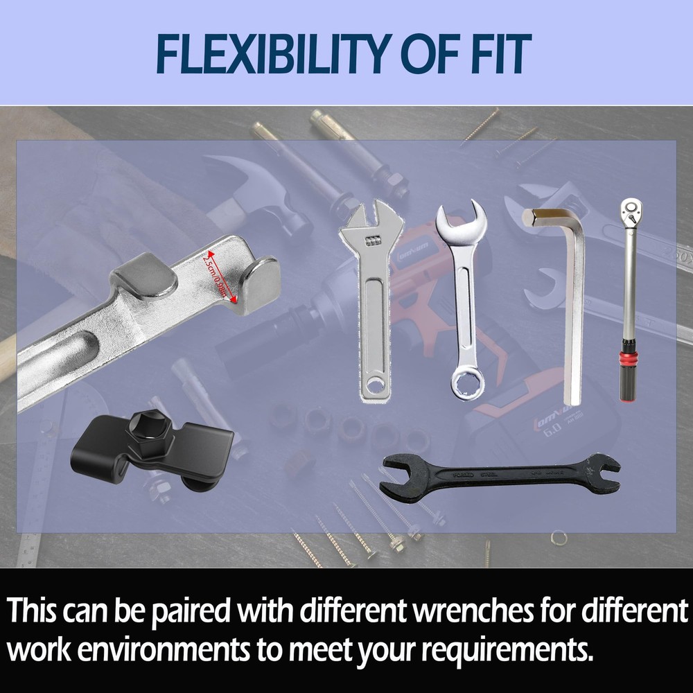 Corrosion-Resistant & High-quality: The wrench extender tool set made of durable drop-forged ally steel with heat treatment, ensuring longevity and resistance to slipping, rounding out, rust, and corrosion. Wrench Extender Tool Bar:13.5"Wrench Extension Torque Tool,The length is sufficient for you to apply more leverage in a narrow space, and the Wrench Extension Torque Tool has a 1/2 "square hole at the tail, which can be extended and expanded again using a ratchet wrench or other tools. Versatile Wrench Extender: Our Wrench Extender Adapter is a stubby adjustable universal torx wrench tool that elevates lever force. The torque multiplier extends the lever arm, significantly increasing torque output. This means you can effortlessly loosen stubborn nuts and bolts with ease. Connect the 1/2 inch breaker bars or 21mm hex drives to any end wrench extender tool for added strength and torque. :It Is widely used for all kinds of standard wrenches, such as hexagonal wrenches, internal hexagonal wrenches, ring wrenches, open end wrenches, adjustable wrenches, socket wrench tools, etc. Multi purpose:A great gift for mechanics, garage door merchants, or laborers, as well as those in need of repairing cars, bicycles, or motorcycles. This simple and powerful leverage tool will be a great assistant in your toolbox.