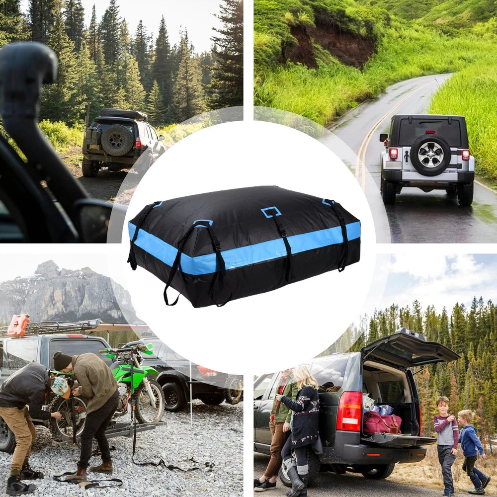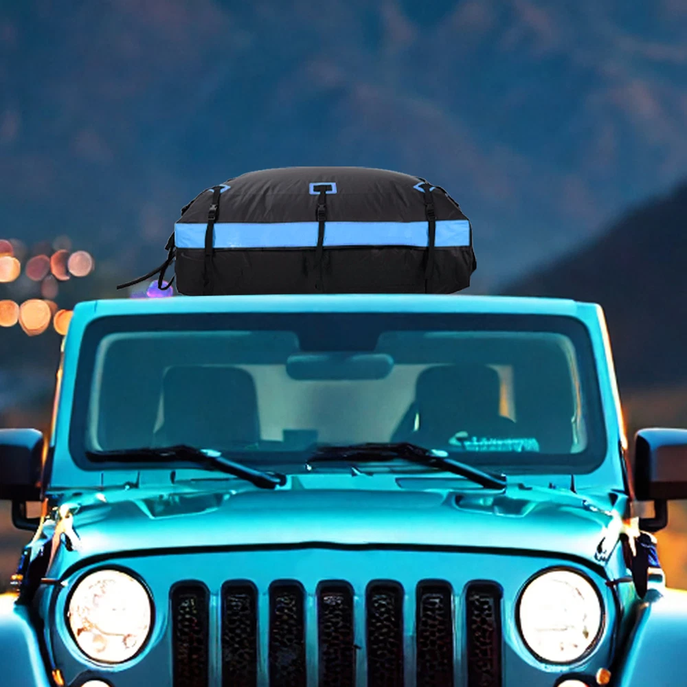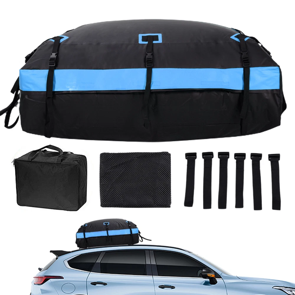 High Capacity Design: Experience the ease of hauling your must-haves with our Car Rooftop Cargo Carrier's notable 28 cubic feet capacity, which fits seamlessly onto SUVs with or without roof racks, raised side rails, cross bars or none at all. Waterproof Design: Engineered with a waterproof design, our Car Rooftop Cargo Carrier ensures your belongings remain dry and secure, providing protection from scratches while keeping cargo stable. Versatile Storage : Seamlessly carry all your camping gear and luggage with our spacious rooftop cargo carrier, ensuring a hassle-free travel experience. Easy to Use: Carefully crafted to enhance your journey, our Car Rooftop Cargo Carrier is designed to optimize passenger comfort, ensuring a relaxed and enjoyable road trip. Extensive Usage: Our Car Rooftop Cargo Carrier is the perfect multi-usage upgrade for your thrilling road trips, camping, and outdoor travels. With its multi-functional design, take your adventures to the next level. Keep your belongings safe during road trips by using Cargo Bag for Top of Car. Its waterproof design ensures equipment stays dry, while optimizing passenger comfort. Perfect for various freight trucks, the bag is a must-have for your next adventure. Specification: Name: Car Rooftop Cargo Carrier Color: black and blue Waterproof level: waterproof Usage: Outdoor product Applicable models: General Packing List: 28-inch rooftop luggage bag*1 Anti-slip mat*1 Storage bag*1 Door hooks*6