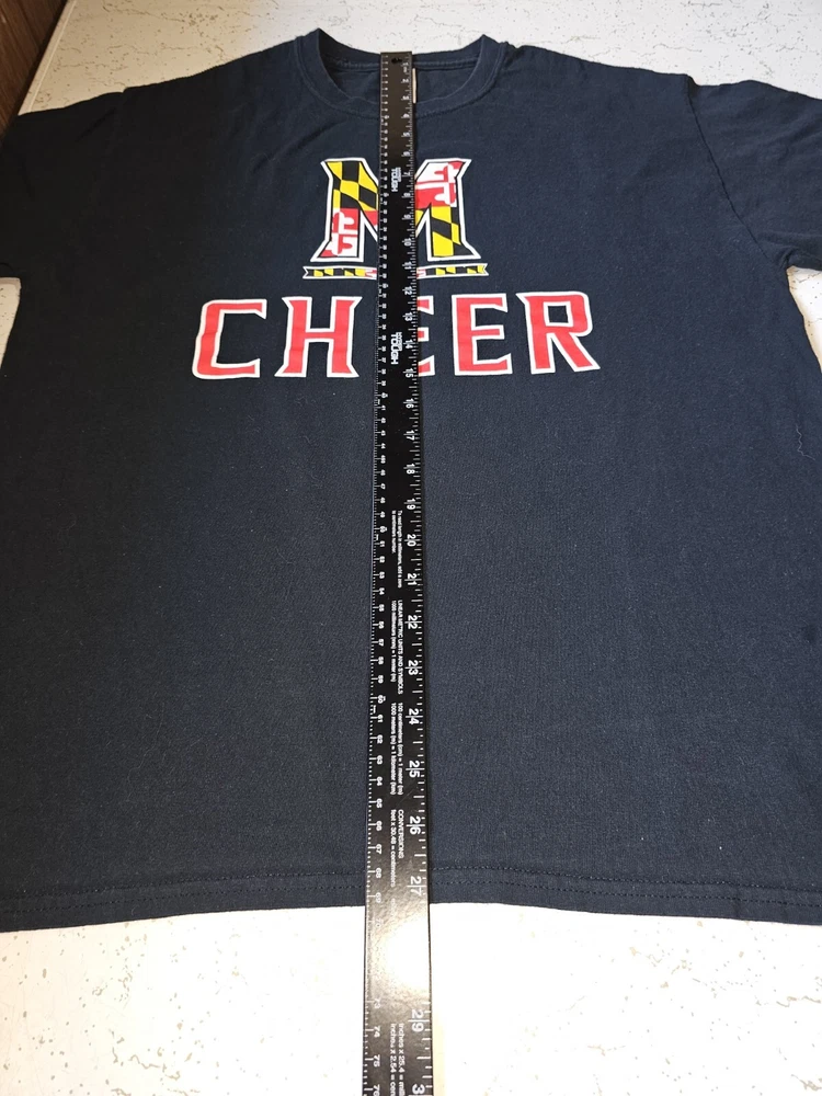 Show your support for the Maryland Terrapins with this black graphic logo T-shirt. This shirt is perfect for any fan looking to represent their team during the regular season. Made by Gildan, this shirt is made to last and is perfect for showing off your team pride. The shirt is size large and is designed for men. The shirt is officially licensed and made in Haiti. Perfect for any cheerleading fan, this shirt is a must-have for any Maryland Terrapins supporter.