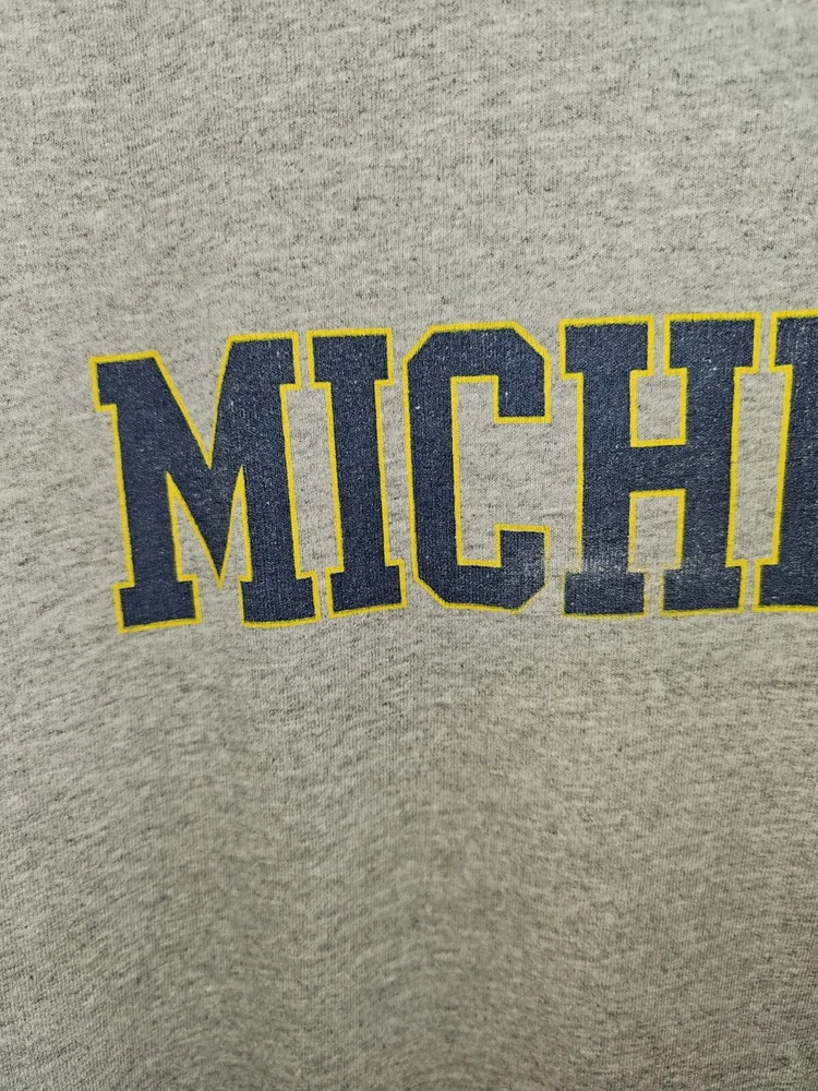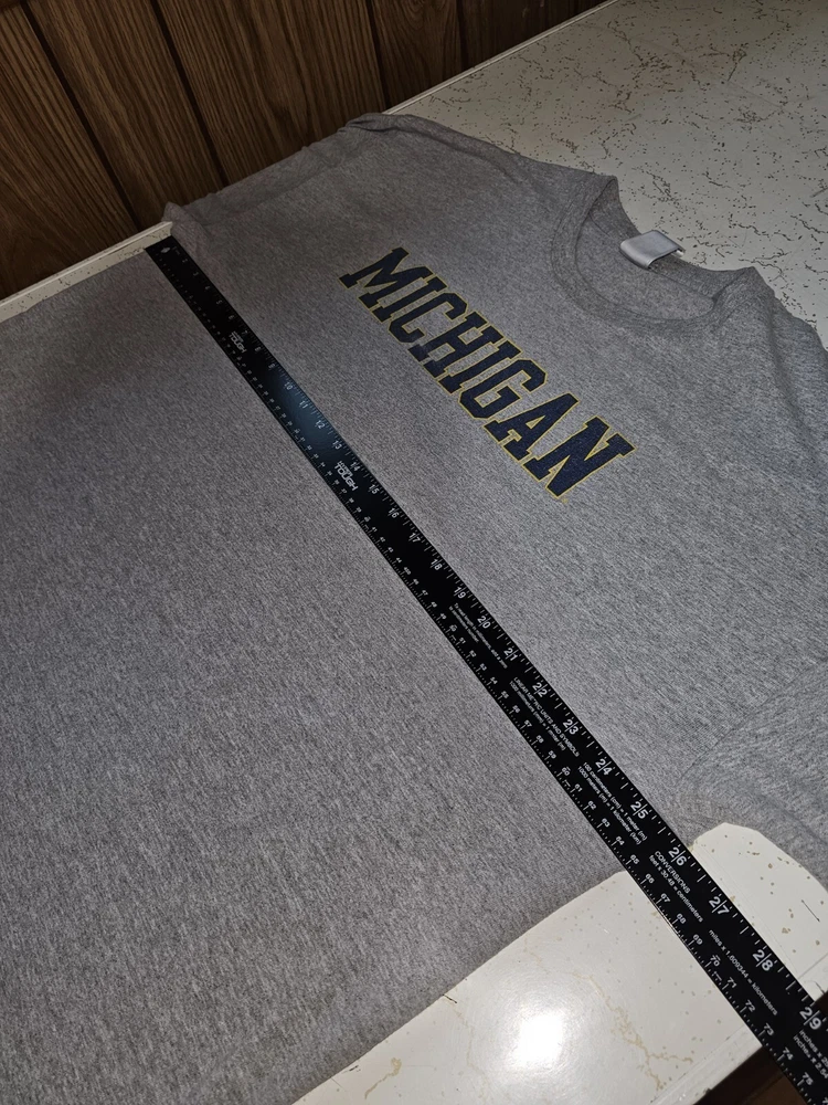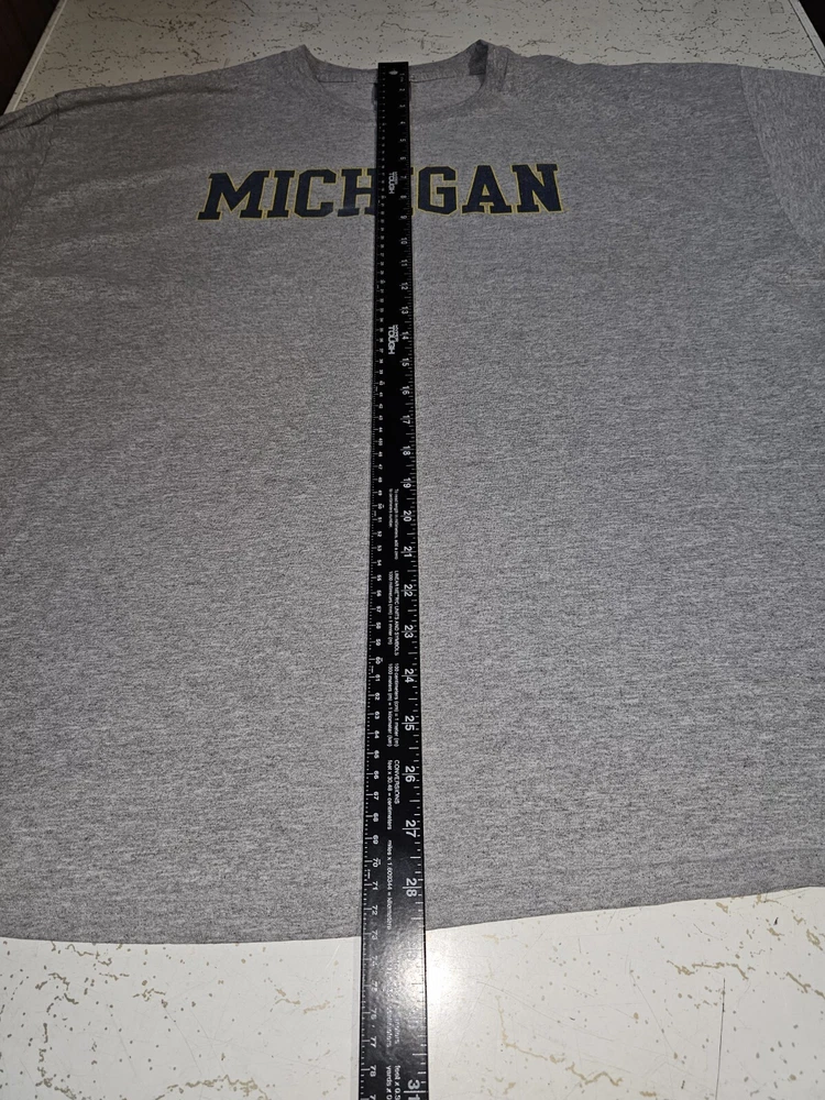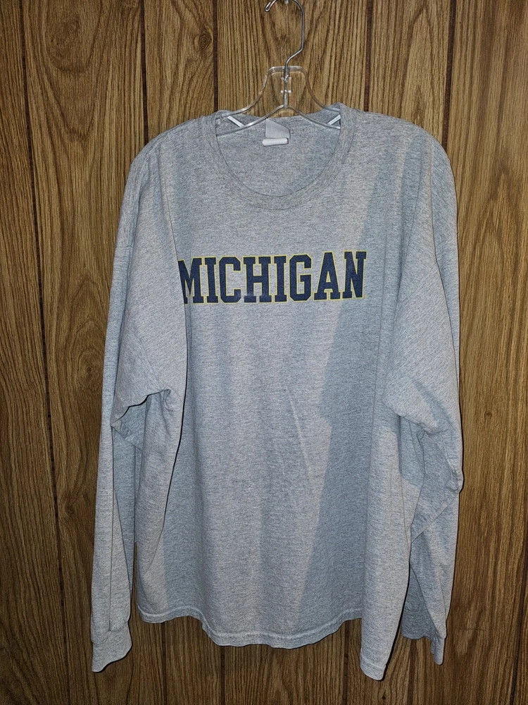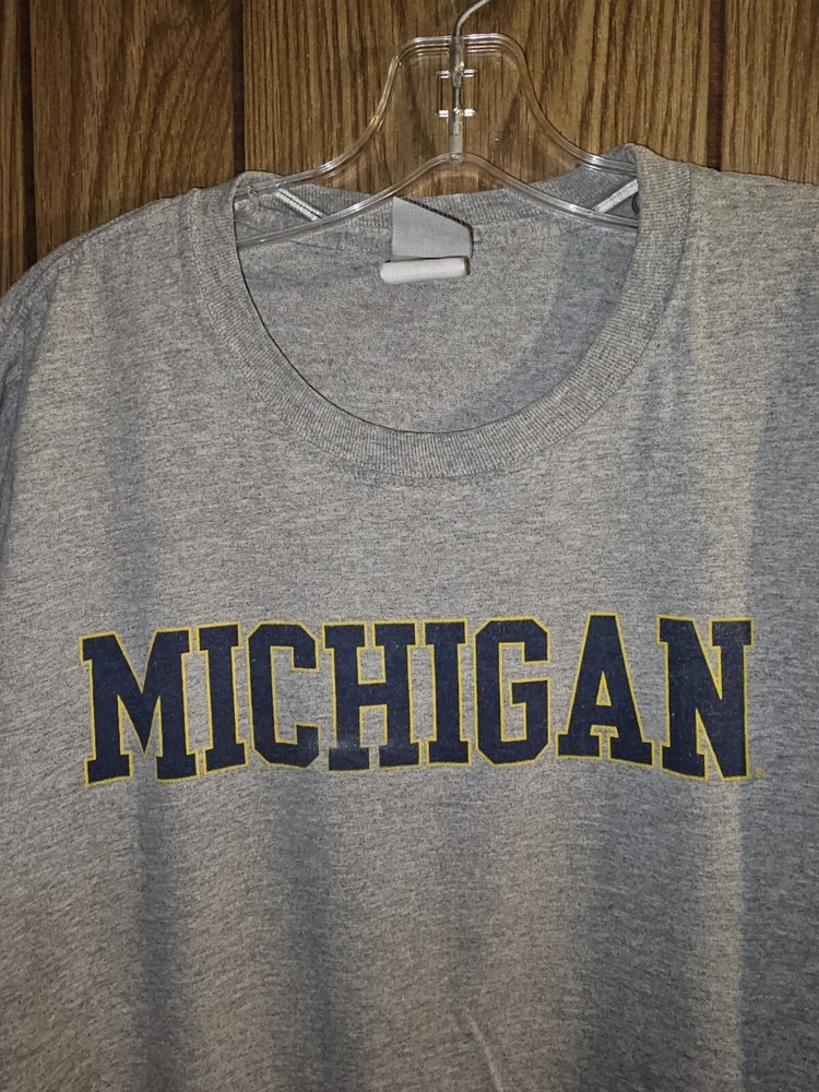 Show your love for the Michigan Wolverines with this stylish and comfortable 2XL men's shirt from Michigan Den. The gray shirt features a bold graphic logo of the team's football program, making it a perfect choice for wearing during the regular season. This officially licensed shirt is made in Honduras and is perfect for any fan looking to add to their collection of sports memorabilia. Whether you're at the game or just out and about, this shirt is sure to show your team spirit. Get yours now!