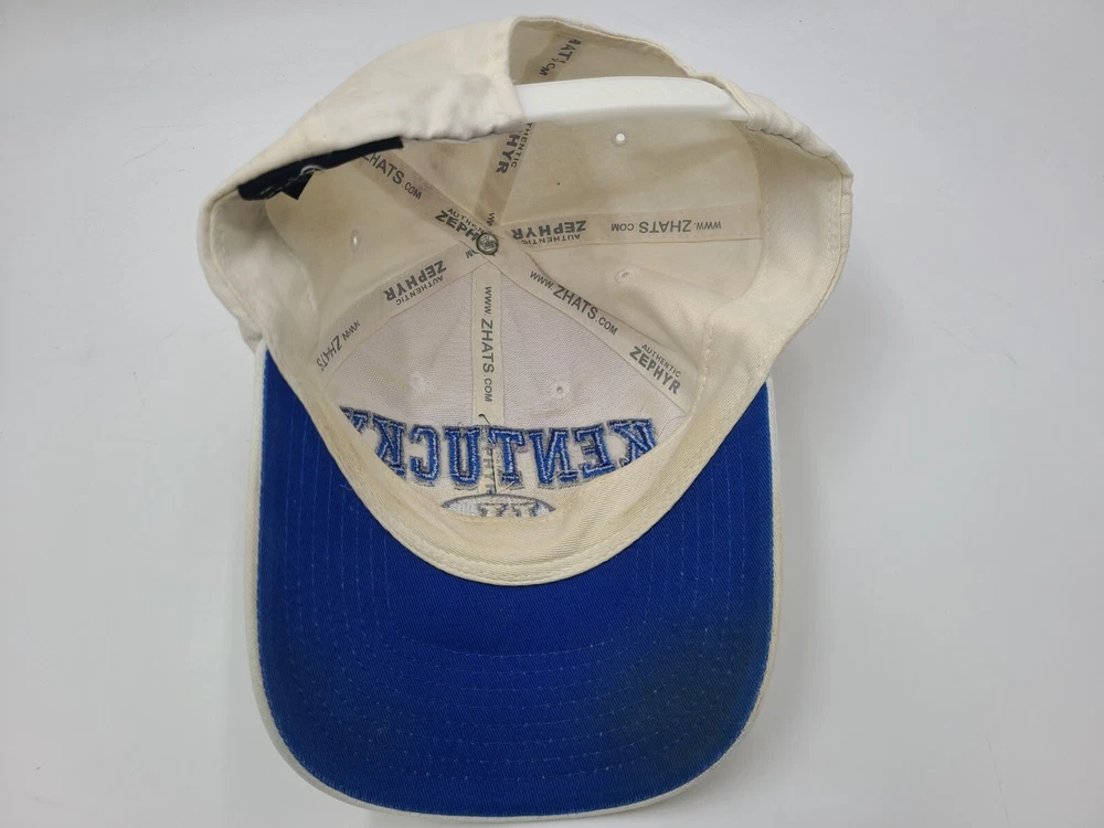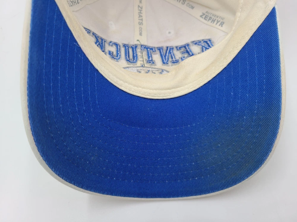 Sport: Basketball Gender: Men Brand: Zephyr Size: One Size Team: Kentucky Wildcats Product: Cap, Hat Color: White Country/Region of Manufacture: Bangladesh