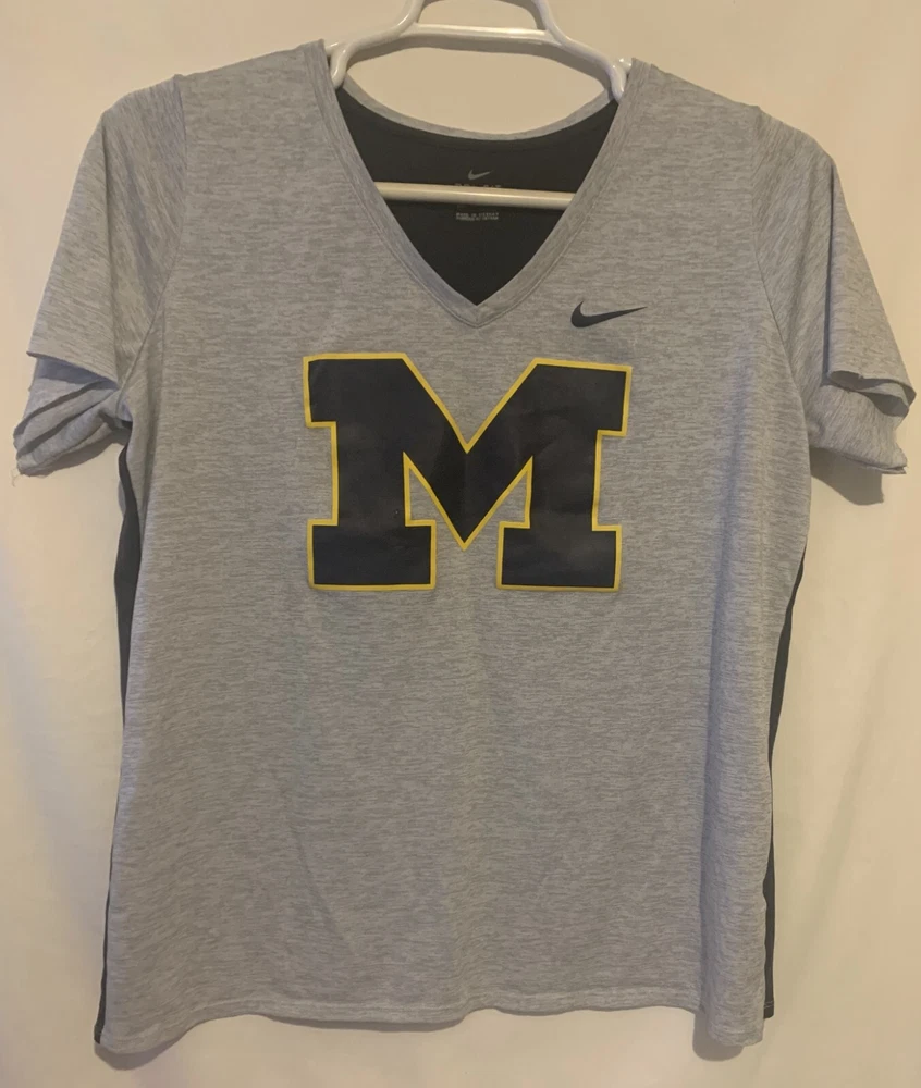 Show your support for the University of Michigan with this stylish V-neck T-shirt. Made from high-quality materials, this shirt features the team's colors and logo, perfect for any fan of the Michigan Wolverines. Available in size XL, this shirt is designed to fit comfortably and features a pit to pit measurement of 23 inches. Ideal for college game days or everyday wear, this shirt is a must-have for any Michigan fan. Whether you're cheering from the stands or watching from home, you'll feel like a true champion in this University of Michigan T-shirt.