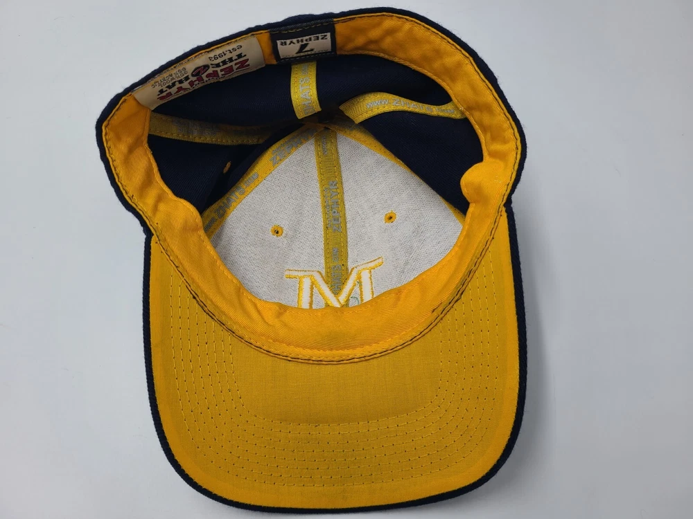 Has some wear on the side and underneath the brim as seen in photos. University of Michigan Wolverines Zephyr Fitted 7 Hat Cap Wool Blend NCAA Blue. EACH ADDITIONAL HAT PURCHASED IS ONLY $1 ADDED SHIPPING!