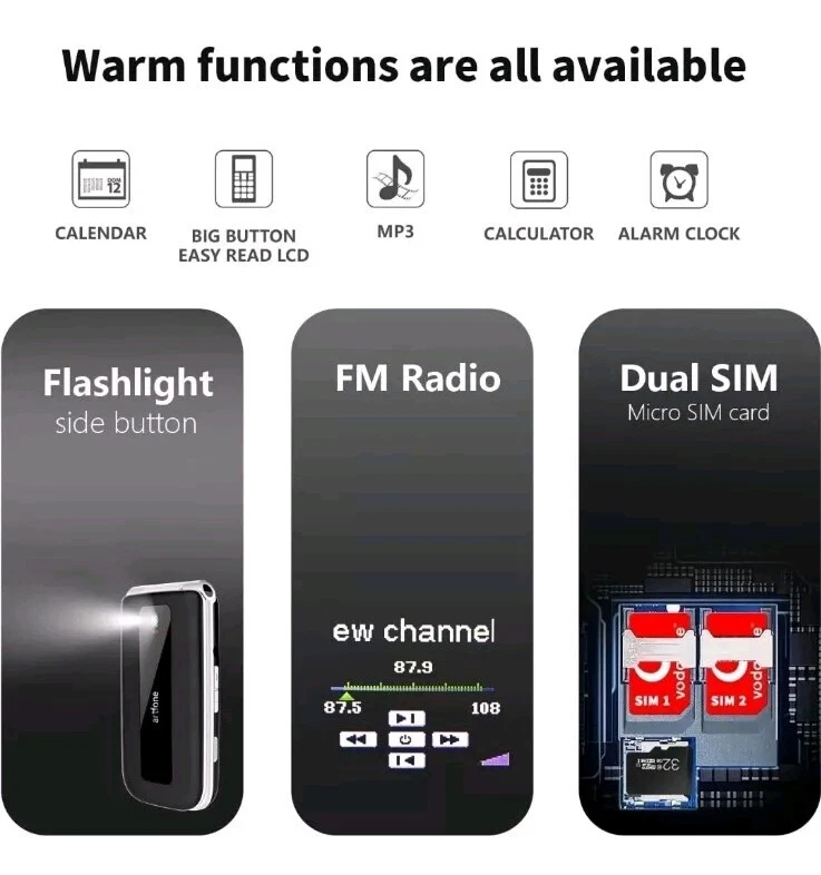 Unlocked Artfone F30 4G Senior Flip Mobile Cell Phones For Older People Dual SIM Artfone F30 4G