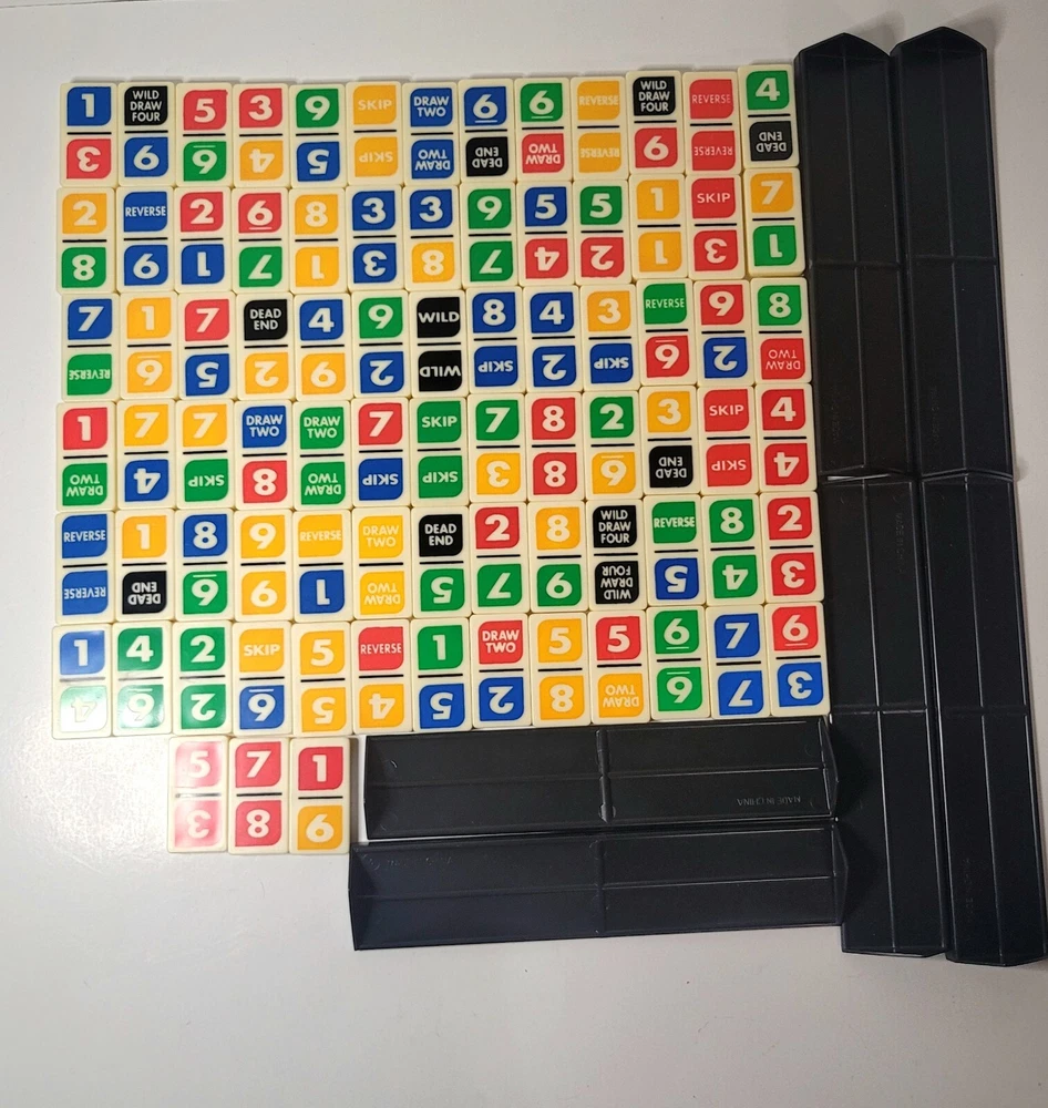 Uno Dominos Mattel 1995 Open Box Includes 81 Domino Pieces and 6 Tile Holders