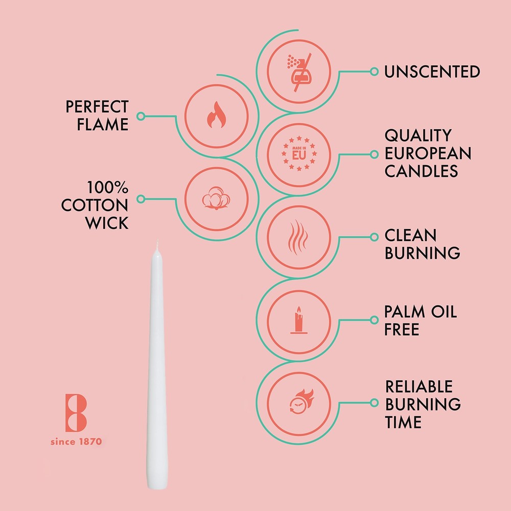 Unscented 10 Inch Dinner Candles, 10 Pack - 8 Hour European Quality Smokeless Dripless Taper Candles for Home Décor COMPLIMENT ANY SPECIAL OCCASION WITH WHITE CANDLE SET: Our 10 inch long unscented candles improve your home décor without spending a fortune. With these tall candles, you can decorate and add warmth to your house in seconds. Our tapered candles are perfect for indoor and outdoor use like wedding ceremonies, parties, candlelight dinner, synagogues, and churches. DRIPLESS CANDLES CRAFTED WITH QUALITY AND CARE - tall and beautiful unscented candles are crafted from 100% Paraffin Wax for a pleasant flame. The braided wicks are made up of 100% Cotton, which is carefully dipped numerous times in supreme quality wax, to give it the perfect shine and elegant look. PACK OF MULTIPURPOSE WHITE TABLE CANDLE STICKS - The super value pack carries tall, and elegant design chime candles which can be used in commercial decoration or at home decor. Perfect fit for all the standard candlestick and taper candle holders. Our unscented table candles can be used as the centerpiece to enhance weddings, buffet tables, and all events. CLEAN BURNING UNSCENTED LONG CANDLES - Our dripless candle stick burns a clean and smooth flame for up to 8 hours. These unscented stick candles are 10-inch long and have a 3/4-inch base diameter. It will provide you a warm and comfortable ambiance during festival times as lent candles, advent candles 100% SATISFACTION GUARANTEED - always gives priority to customer satisfaction. If for any reason you are unsatisfied with the quality of our dripless taper candles, feel free to contact us, and we'll make things right. #AMBLER Shipping We offer FREE shipping on all orders! We ship within Three business days of payment, usually sooner. We use a selection of shipping services such as UPS, FedEx, USPS etc. We only ship to the lower 48 states, no APO/FPO addresses or PO Boxes allowed. Local pickups and combined shipping options are not provided at this time. Return You can return a product for up to 30 days from the date you purchased it. Any product you return must be in the same condition you received it and in the original packaging. Please keep the receipt. Payment We accept payment by any of the following methods: PayPal Please pay as soon as possible after winning an auction, as that will allow us to post your item to you sooner! Feedback Customer satisfaction is very important to us. If you have any problem with your order, please contact us and we will do our best to make you satisfied. Contact Us If you have any queries, please contact us via ebay. We usually respond within 24 hours on weekdays. Please visit our eBay store to check out other items for sale! Thank you for shopping at our store.