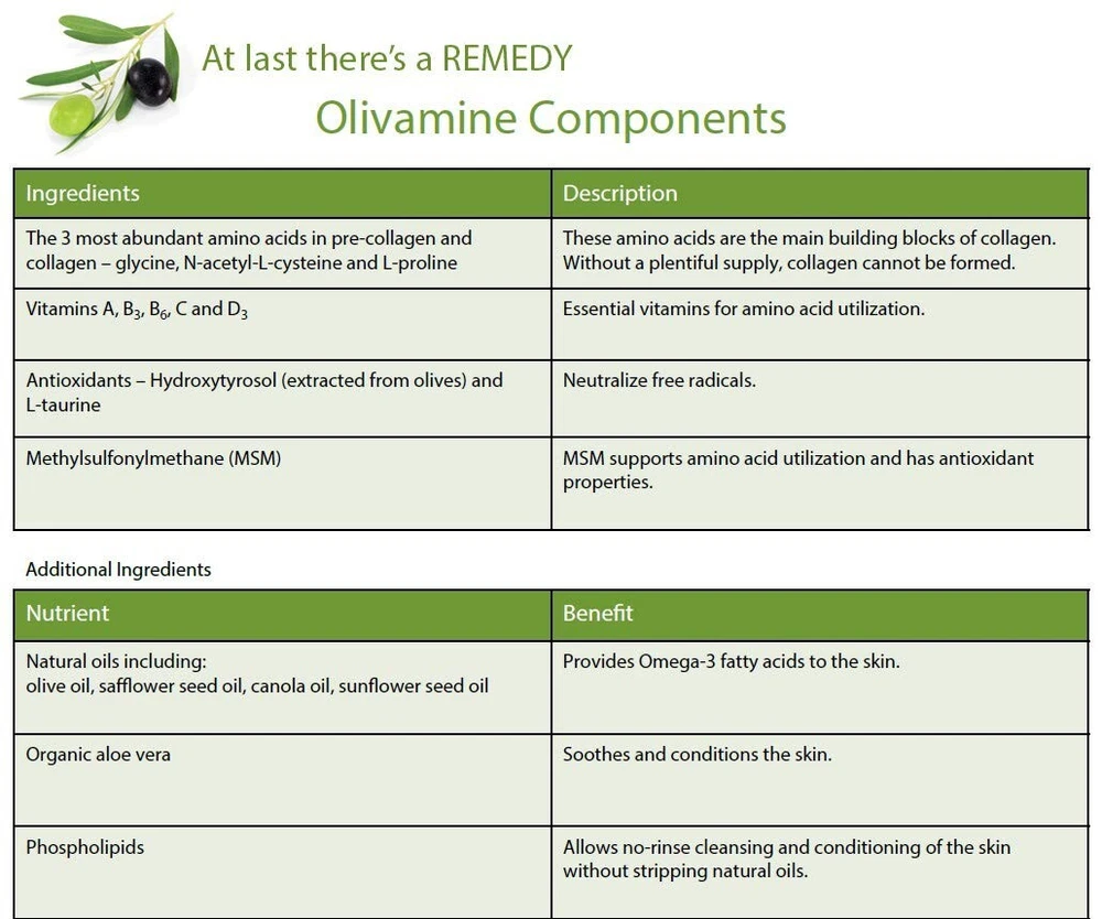 Unscented Olivamine Skin Repair Cream and Body Lotion, 32 Fluid Ounce Description: Protects and relieves damage related to frequent hand washing such as dryness, cracked, inflamed, reddened and itchy skin Blend of nutrients targeted for skin cells, as well as Dimethicone to help prevent e-TEWL Tested to be non-sensitizing, non-allergenic Body lotion beneficial for face, hands, body, and legs Skin Repair Cream to help rebuild skin's natural oils