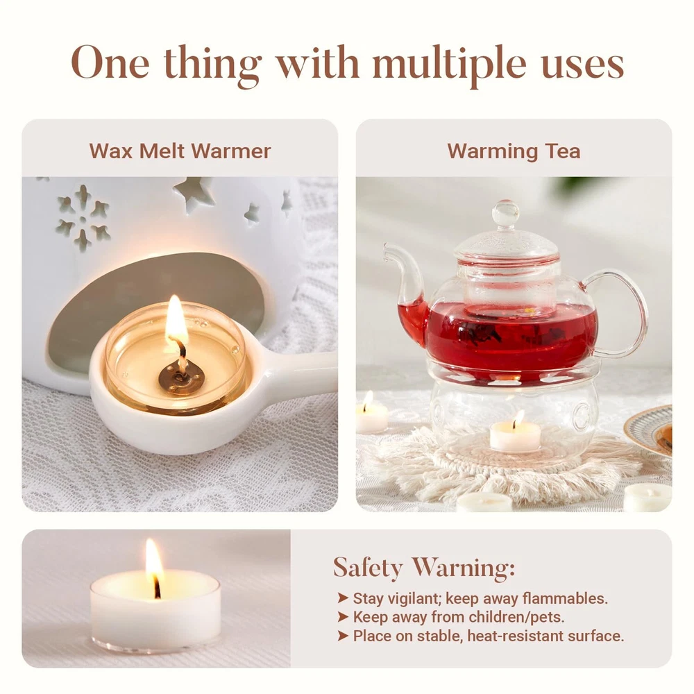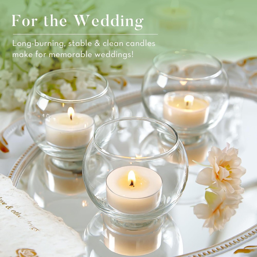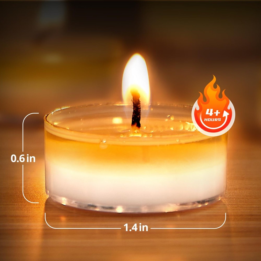 Unscented Soy Tea Light Candles 100-Pack 4-Hour Burn White Bulk