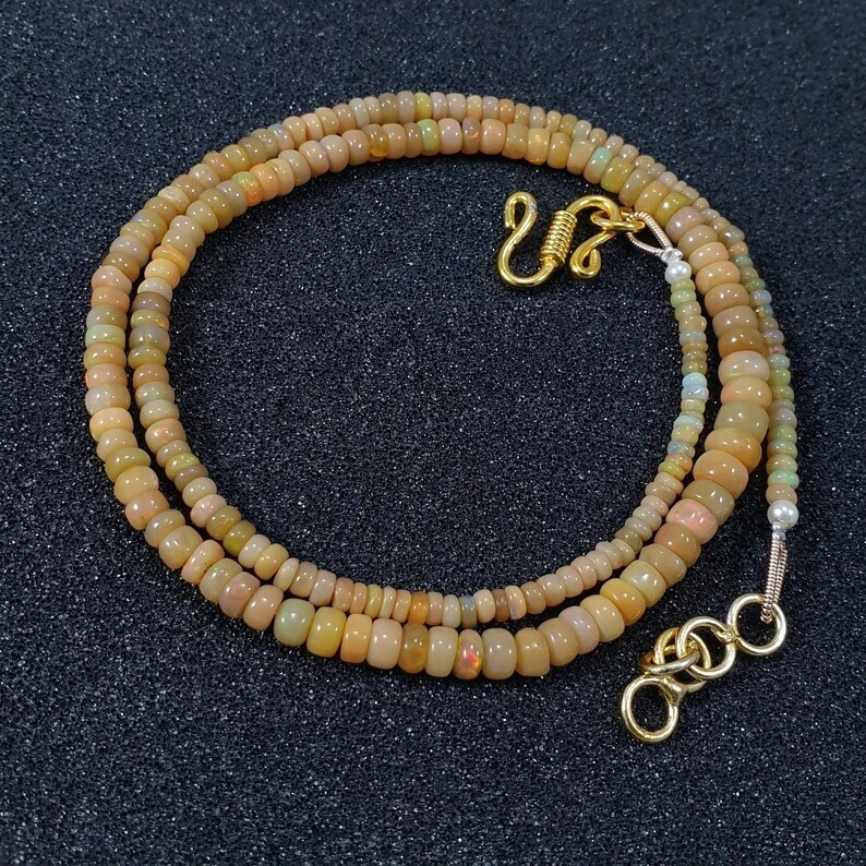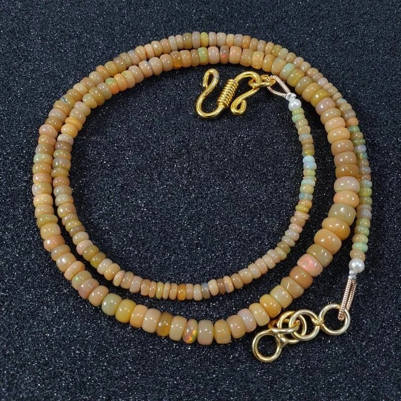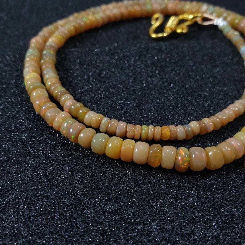 π Description: Experience the beauty of nature with this Natural Fire Ethiopian Opal Beads Necklace . Each opal bead is untreated, showcasing its natural play of colors with flashes of fire that make the necklace truly enchanting. This elegant piece measures 16 inches and is finished with a 925 Sterling Silver clasp for lasting shine and durability. A perfect combination of natural beauty and fine craftsmanship, this necklace is ideal for both daily wear and special occasions. πΉ Highlights: Natural & Untreated Ethiopian Opal Beads Stunning Fire & Play of Colors Necklace Length: 16 inches Bead Shape: Smooth Rondelle Secure 925 Sterling Silver Clasp π Style: Elegant | Timeless | Handcrafted | Natural Fire Gemstone π Occasion: Perfect for birthdays, anniversaries, weddings, or a special gift. π Ships Worldwide with Tracking π¦ Secure & Protective Packaging β±οΈ Handling Time: 1β2 Business Days π Estimated Delivery: 10β15 Days (Varies by Location) π 30-DAY RETURN POLICY β BUY WITH CONFIDENCE We offer a 30-Day Hassle-Free Return Policy . Return the item in its original condition if you're not fully satisfied. π€ YOUR SATISFACTION MATTERS π¬ Contact us anytime for support, questions, or custom requests. We're available 24/7 to provide fast and friendly service. π οΈ CUSTOM ORDERS WELCOME Interested in a custom piece featuring this Jeremejevite? π© Reach out to Gemoracrafts β Experts in handcrafted luxury design. ποΈ ABOUT GEMORACRAFTS Gemoracrafts is your trusted source for rare, certified gemstones and bespoke jewelry solutions . Every gem is carefully selected for quality, authenticity, and long-term value.