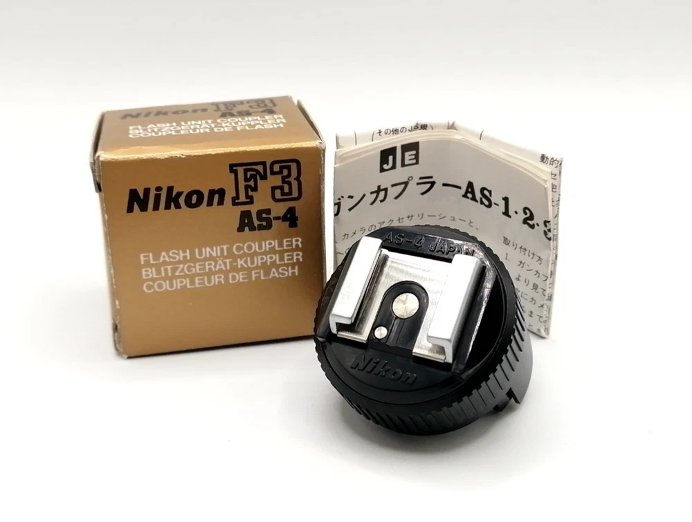 [Unused] Nikon AS-4 Flash Unit Hot Shoe Gun Coupler For F-3 Film Camera JAPAN Description Total Condition; Unused Appearance; Appearance is beautiful. *Please check photos. Functional; It works properly. Bundled Items; All you can see on the picture will be included in a set of a package. Above condition is based on my own opinion. Please check the photo carefully. Please feel free to contact me for any questions! Thank you. Shipping I send a product by FedEx or DHL or JP Post . I attach the tracking number. Please bid it without worrying. Shipping is available from Monday to Friday. Weekends are not available because office is closed. Returns Unconditional Return Policy Customer service and satisfaction are very important to us. I have an unconditional return policy if notified within 30 days of the receipt of the item. All returned items must be the original condition. All return requests must be made within 30 days of the receipt of the item. Please contact me first for return before you ship it back to me. The postage of the returned goods is a seller burden. International Buyers Please Note: Import duties, taxes, and charges are not included in the item price or shipping cost. These charges are the buyer's responsibility. Please check with your country's customs office to determine what these additional costs will be prior to bidding or buying.
