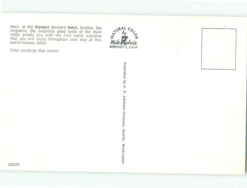Unused Pre-1980 OLYMPIC WESTERN HOTEL Seattle Washington WA 60.000 cards hr5049@