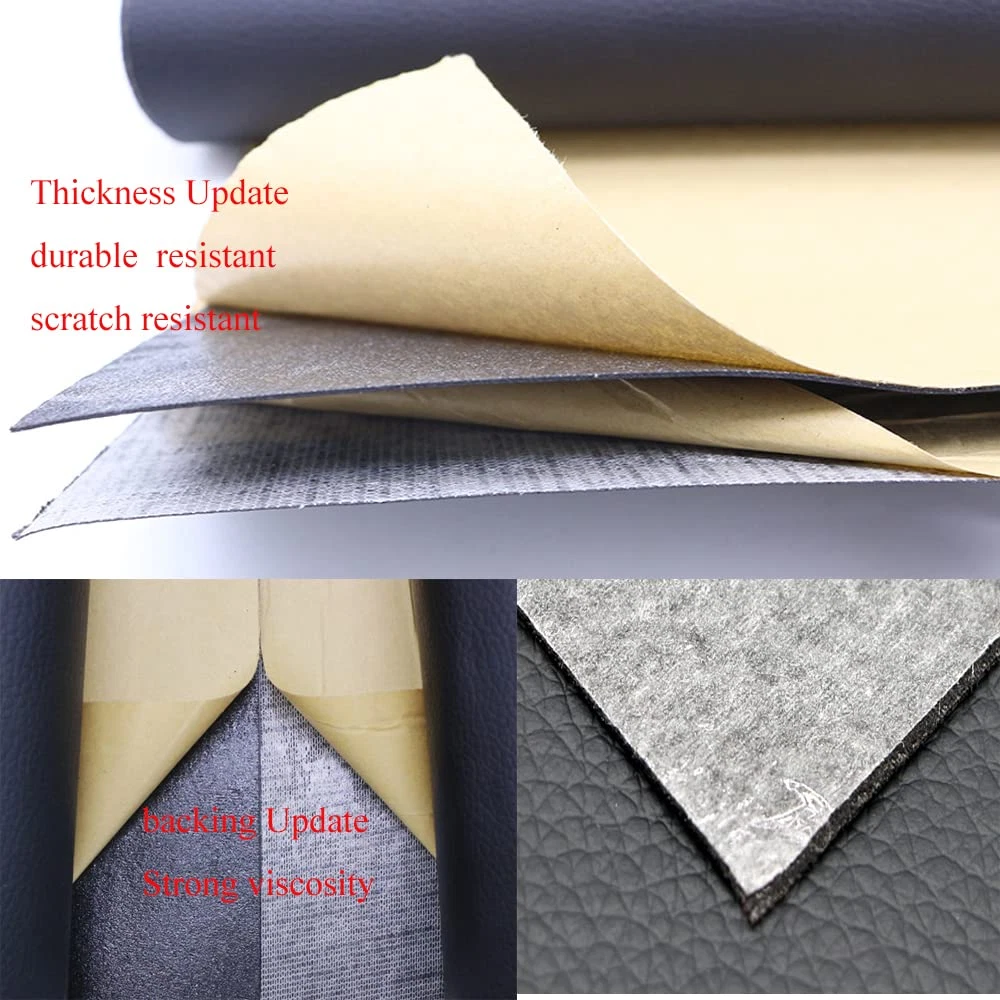 Faux leather sheet Repair tape with self-adhesive and easy to use just peel and stick.No glue and professional tools. Faux Leather repair patch wide range: DIY Craft,couches, recliner,sofas, chairs, car seat, bags, purse , boots, down jacket, belts , cushion, luggage, gloves, motorcycle seats, recliner, handbag, truck seat, and other vinyl leather furniture etc. Faux Leather Sheets Repair Size: 17.3" x 78" (44cm x 2m), the thickness is about 0.7mm-1mm. Our Leather Repair Patch Update:Upgraded adhesive backing, strong viscosity, durable resistant and scratch resistant, waterproof and easy to clean. Customer Services: If you are not satisfied with our product or service. Please let us know first by sending e-mail via account. We will resolve your problem ASAP. Features of Self Adhesive Leather Repair Patch: High quality leather fabric can be installed on any flat surface. 2. High quality leather fabric can be installed on any flat surface. 3. Easy to cut and peel away from the paper backing move without damaged. 4.Fabric Material Faux Leather Sheets environment friendly and waterproof. 5.Durable ,can be worked as wallpaper for shelves,accent wall,bathroom cabinet,crafts decor sticker. 6.The texture is clear, the leather is delicate and comfortable. Package Included: 1 Roll Black Leather Repair Patch , Size :17.3x78 Inches(44cmx2m). Leather Repair tape apply steps: 1.: 1.Clean the surface - Clean the surface where will be pasted, make sure the surface is clean, dry and smooth. 2.Measure and Crop wallpaper - Measure the size of the coverage. Cut the paper into right size, it's better to leave about 1~2 inches extra. 3.Peel the back paper and stick- Peel off the backing paper evenly with one hand whilst smoothing the film to the surface. With your other hand, from the center to edges. For this it's better to use a soft cloth. About leather fabric warm tips: 1.Before sticking it please make sure the surface is clear,fate and dry. 2.Don't peel the backing paper all at once,slowly paste, avoid any damage. 3.Buy enough rolls at ONE time to make sure they come from the same batch to avoid color difference. 4.The color of the leather surface may vary slightly depending on the different light.pictures on website for reference only.