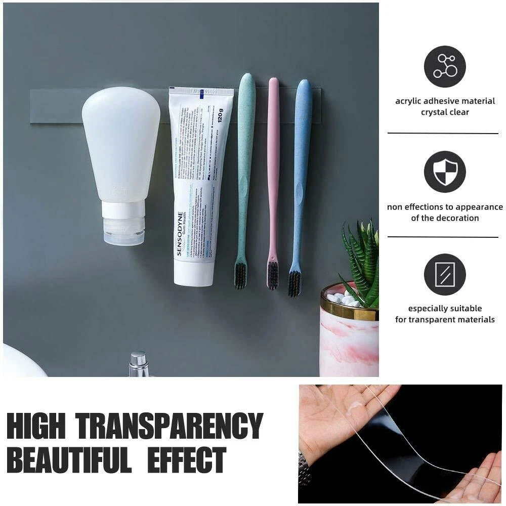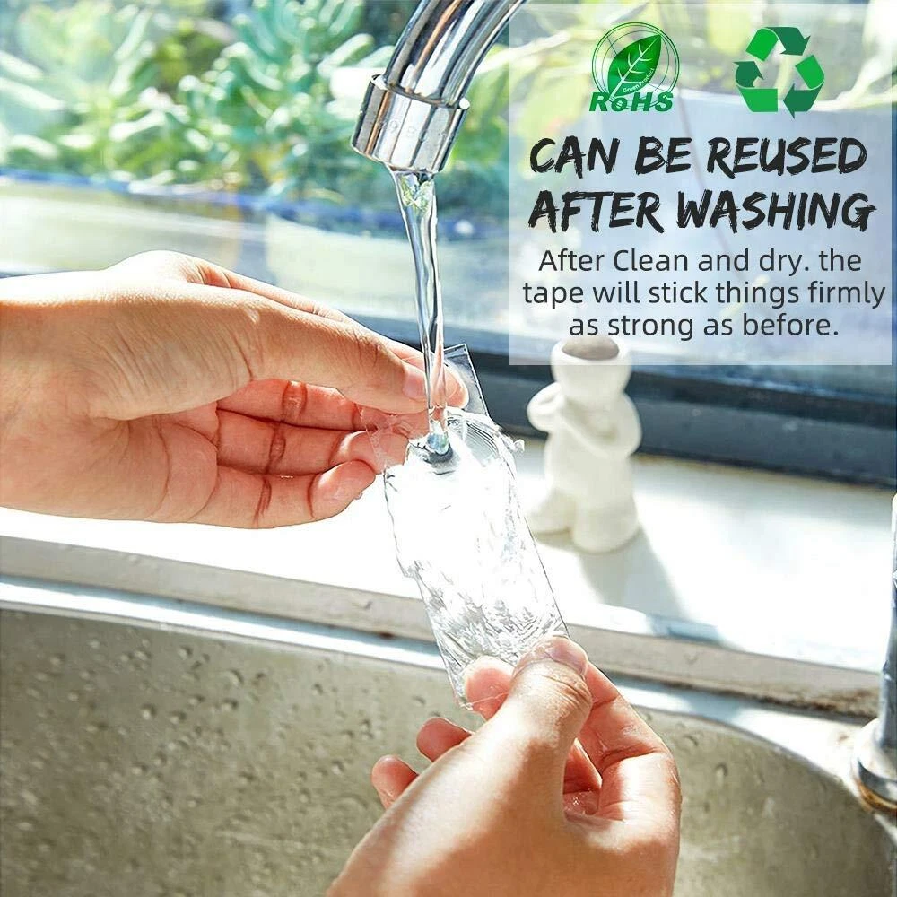 Double-Sided Nano Adhesive Tapes Features: 1. Made of high quality nano-pu gel material,length 5M/16.4FT, width 30mm, thickness 1mm. Sturdy and durable, double-sided adhesives, environmentally friendly, heat resistant(-16C (0F) or above 62C (150F),transparent, washable, reusable, easy to remove, leave no traces on the wall or any surface. 2. It is easy to mount hooks, signs, numbers, pictures, car number plates etc. 3. Provides a quick and easy solution to mount and repair where traditional fasteners can't. 4. Alternative to nails, screws & glues. 5. Ideal for use on finished/painted surfaces, metal, plastic, vinyl etc. Suitable for exhibitions, home, office, kitchen, etc 6. Compare to super glue, our double-sided nano adhesive tape could offer you an option of taking it down at some point, so you may rearrange them at a later date. Useful Information: 1. Please clean the surface first before applying. Remove any residue or oil, These tapes work perfectly on most flat surface, such as dashboard(for toys), windshield, painted wood, metal surfaces, some textured tiles, etc. 2. DO NOT USE on drywalls & the surfaces that have a waxed layer, Adhesive pads can definitely rip paint! 3.When it gets dirty, you can wash it with water. DO NOT use any other wipes or detergent. You just need to wash and dry it to restore the sticky then reuse again Specification: Material: nano-pu gel Color: Clear Length: 5m Width: 30mm Thickness:1mm Package includes: 5m Double sided adhesive tape * 1pcs [Latest Upgrade Nano Double Sided Tape] This adhesive tape using the most advanced nano technology, Unique formula adhesive make this tape same stronger as the new even several use after wash. heat-resistant, longer lasting and more durable. Stronger Grip [Wide application and Versatile] double sided tapes is designed for tough applications, .It is easy to cut to any size and length you want. will join or mount paper,Carpet, card, wood, ceramics, Plastics,Glasses,Metals, car number plates and most plastics,This tape will be very useful for various household purposes. [Finding new uses daily]Industrial double sided nano tapes delivering an instant and weatherproof bond,It can be stretched, bending and folded out of shape for your various needs. These sticky tapes will last you a long time and provide many solutions, and you can forever finding new uses for it. A useful item to have in your tool box,. [Easy to Use]It is Easy-to-apply design with no mess or tools, No need for nails, screws, or glue with these Removable, washable and reusable double sided self nano adhesive tapes. length 3M/9.84FT, width 30mm, thickness 1mm. that are ideal for mounting and displays.It's compatible with a variety of clean flat surfaces and conforms easily. Super easy to peel off from the wall,will not damage your walls or surfaces and leave no residue. 【Product Features】Transparent: ✔️. UV-resistant: ✔️. Age-resistant: ✔️. Reusable:✔️. Residue-free: ✔️. Removable:✔️. Waterproof: ✔️. Oil- and grease-resistant