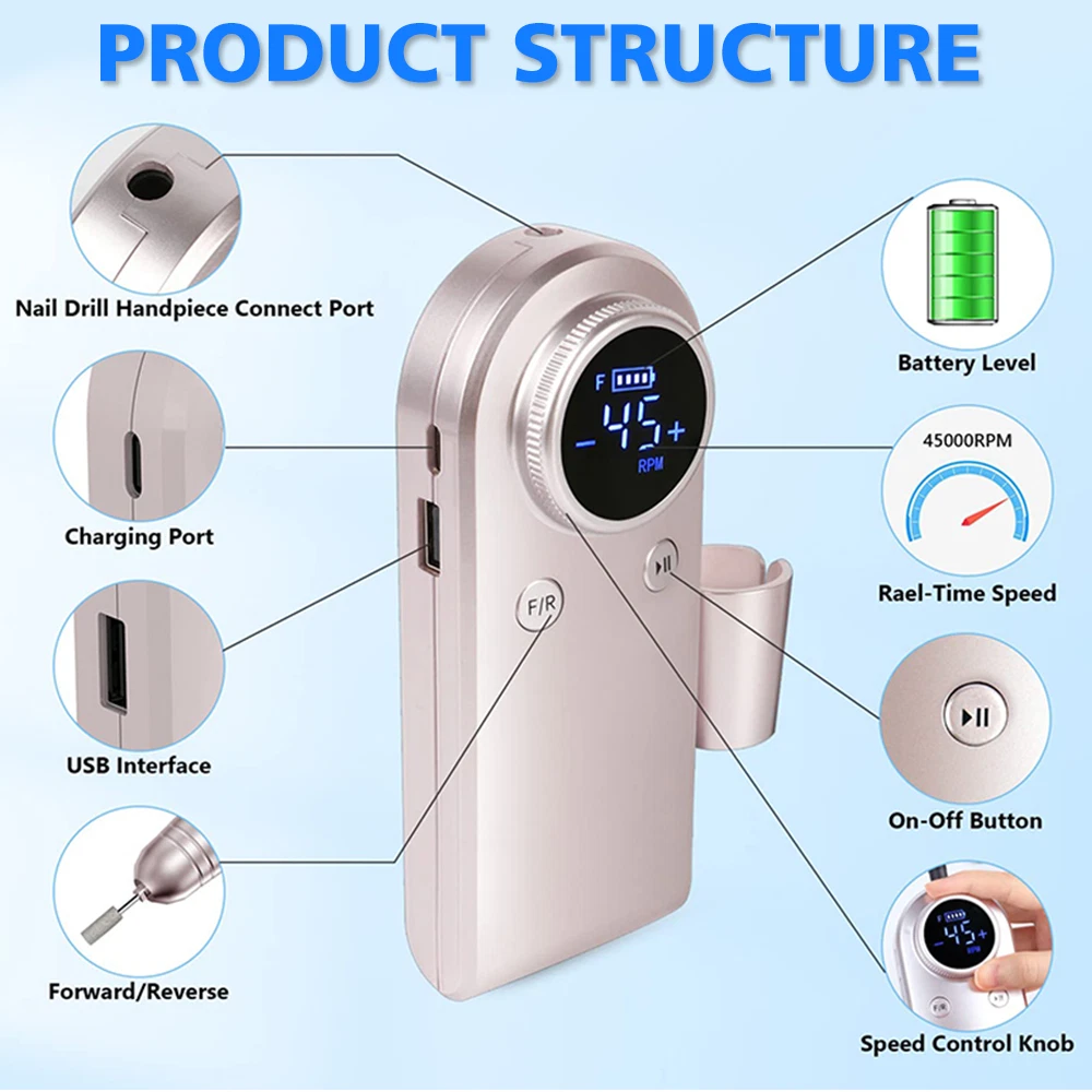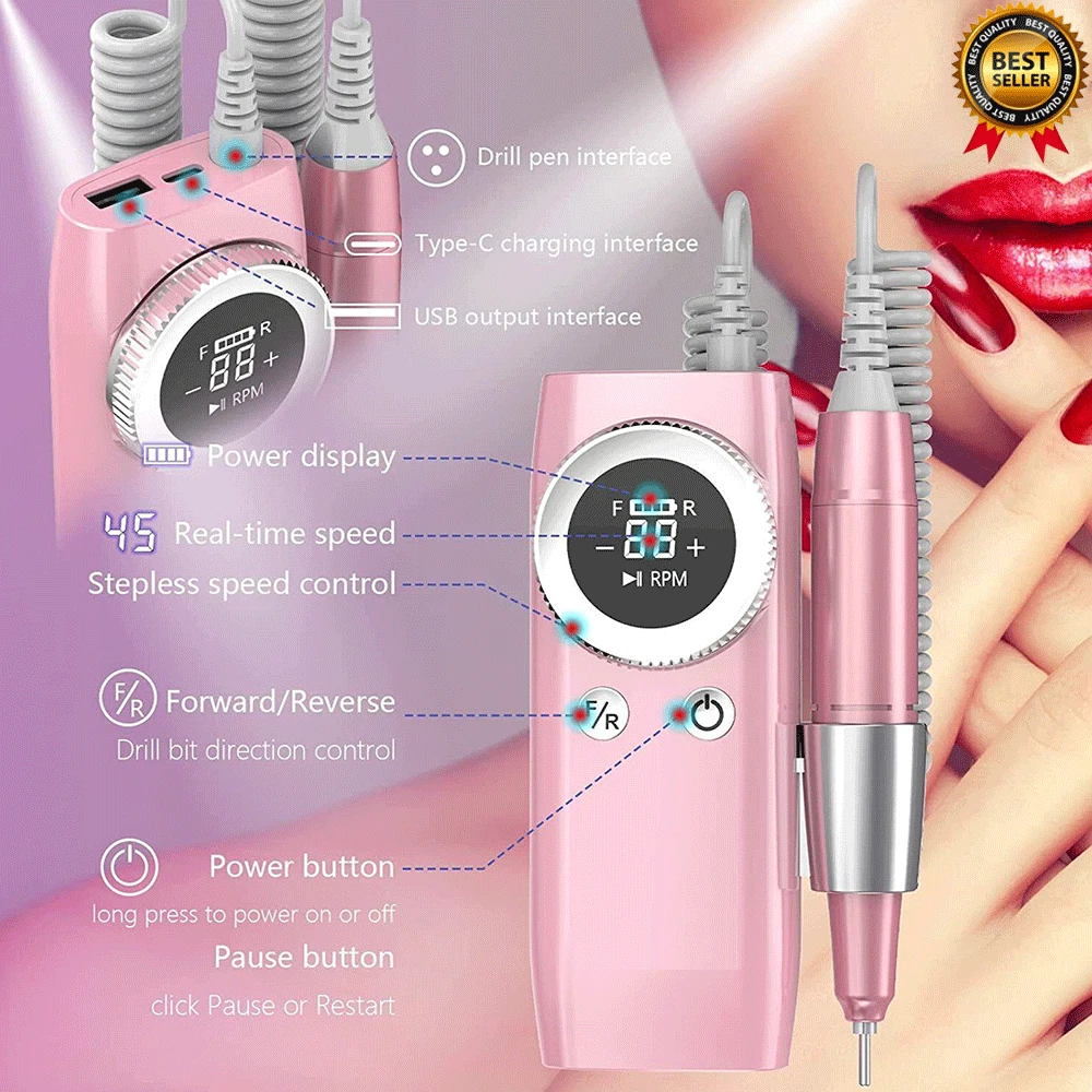 Upgarded 45000RPM Nail Drill File Kit Portable LCD Display Manicure Machine BK58