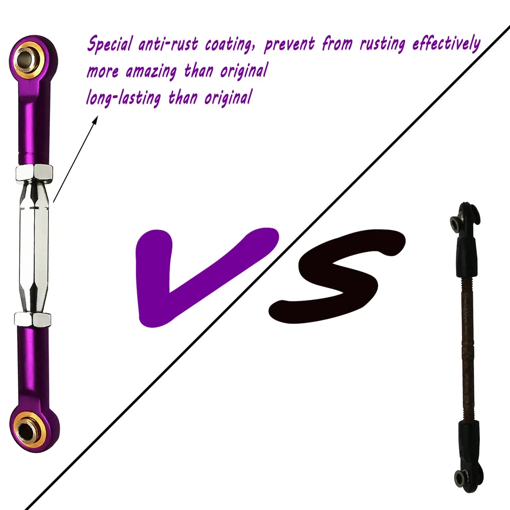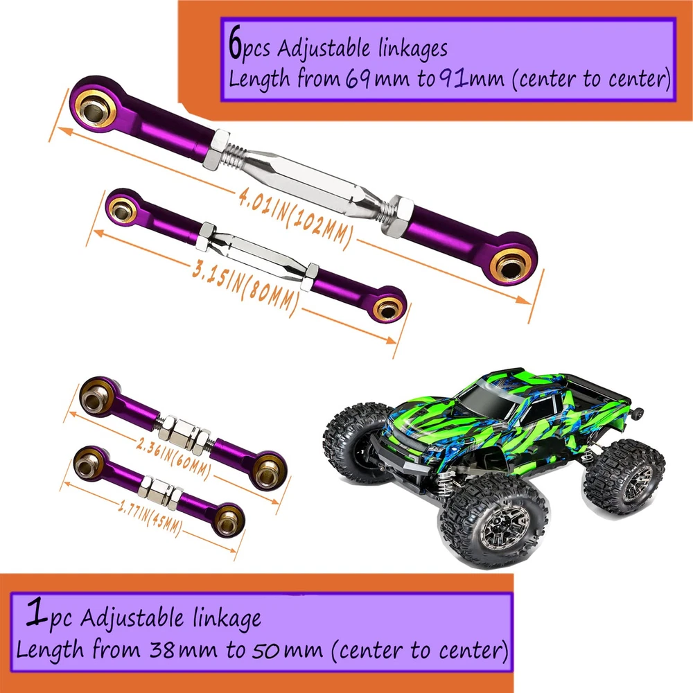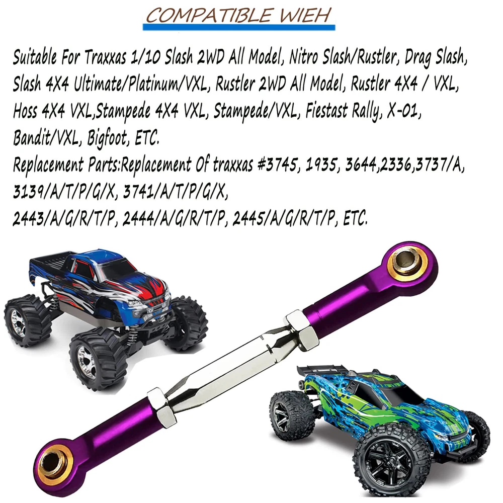 【Universal Compatibility】2WD Turnbuckles/Camber Links could be with Traxxas 1/10 Slash 4X4 / 2WD Short Course Racing Truck RC Car,Rustler 4X4 VXL,Nitro Slash,Slash 2WD Unassembled Kit,Slash 4X4 Ultimate,Slash 4X4 Platinum,Slash 4X4 VXL,Slash VXL,Stampede 4X4 VXL,Stampede VXL,Hoss 4X4 VXL.for Traxxas #3745 3139 3139A 1935 3644 3741X 3741A.(Note: If the connecting rod screw is loose, fix the connecting rod on the car shelf and tighten the screws to solve the loosening problem.) 【 Made of high-quality materials】Steel 2wd Turnbuckles/Camber Links are made of Aluminum Alloy, CNC precision machined,stronger and more durable and harder than original and common aluminium material, while the design of locknuts makes our products fasten well, more tighter in use cases 【What You Get】Overall (Min-Max) Approx 80-102 mm,Center to Center (Min-Max) Approx 69-91 mm for 6pcs long linkages. Overall (Min-Max) Approx 45-60 mm,Center to Center (Min-Max) Approx 38-50 mm for 1pc short linkage, some locknuts. Please allow us have a little measurement error about colour and size, and if you have any questions during using it, please us anytime,we will reply you within 24 hours! 【Ultra Considerate Design】2WD RC Car Metal Adjustable Upgrade Parts Turnbuckles/Camber Links are design with longer adjustable length, Overall (Min-Max) Approx 80-102 mm,Center to Center (Min-Max) Approx 69-91 mm for 6pcs long linkages. Overall (Min-Max) Approx 45-60 mm, Center to Center (Min-Max) Approx 38-50 mm for 1pc short linkage, which design brings more happiness for our customers 【Easy To Install】turnbuckles/Camber Links are easy and convenient for installing, perfectly fit with other accessories,so that we can strive to provide better convenience and service for rc car enthusiasts