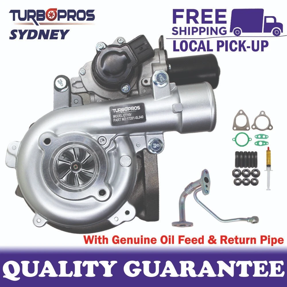 Upgrade Billet Turbo Charger With Genuine Oil Feed Pipe For Toyota Hilux N70 D4D KUN26 1KD-FTV 3.0L Turbo Pros billet turbochargers are built, high-speed VSR balanced and air flow calibrated by using the latest test balancer and flow bench to meet and even exceed the OEM specs. - Billet Compressor Wheels Which Are Lighter And Stronger - Improve Performance And Durability This is a complete turbocharger with an actuator. High Tensile Stud Kit, Gasket Kit & Turbo Pre Lubricant Are Included. Genuine Oil Feed & Return Pipe Is Included. (Shown in the first picture) Vehicle Information Application: Toyota D4D Hilux N70 KUN26R 2005-2015 Engine: 1KD-FTV 3.0L Fuel Type: Diesel Turbocharger Information Brand: Turbo Pros Model: CT16VGT / CT12CV Cooling Type: Oil & Water OEM Part No 17201-30110 / 1720130110 / 17201-0L041 / 172010L041 / 17201-0L042 / 172010L042 / 17201-0L040 / 172010L040 Turbocharger Part No TC1VET-S0011B / TC1VETS0011B / TC1VED-S0015B / TC1VEDS0015B / 9B001 Oil feed pipe supplies engine oil from the engine block directly to the turbo's bearing system, securing lubrication and cooling for the turbo shaft. Oil return pipe evacuates engine oil from inside the turbo and maintain flow through it to the oil pan. When performing a major repair on a vehicle's turbocharger, the oil drain pipe and the oil feed pipe must be kept in perfect condition to ensure good lubrication of the turbocharger, it is necessary to maintain a constant and adequate flow of lubricant. We recommend fitting a new oil feed & return pipe when replacing or refitting a turbo. Free Postage. Pick Up Available. Please confirm that your original part / OEM number matches up with one of the part numbers above. Please send us an eBay message if you have any questions, we will get back to you ASAP. Thank you.